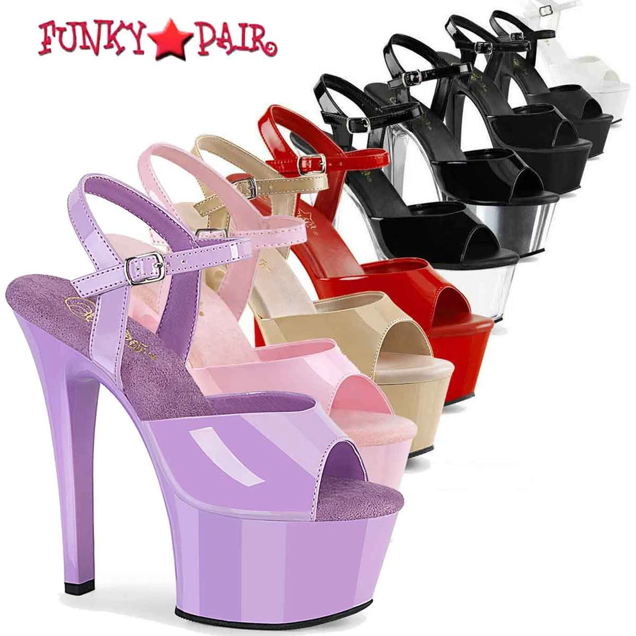Pleaser Shoes Aspire-609 Approximately 6 Inch (15.25cm) Heel, 2 1/4 Inch (6cm) Platform Ankle Strap Sandal Featuring Vegan Leather Insole Price Range: $44.95 – $57.95