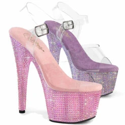 7″ (178mm) Heel, 2 3/4″ (70mm) Platform Ankle Strap Sandal Featuring Resin Rhinestones Encrusted All-Over the Entire Platform Bottom