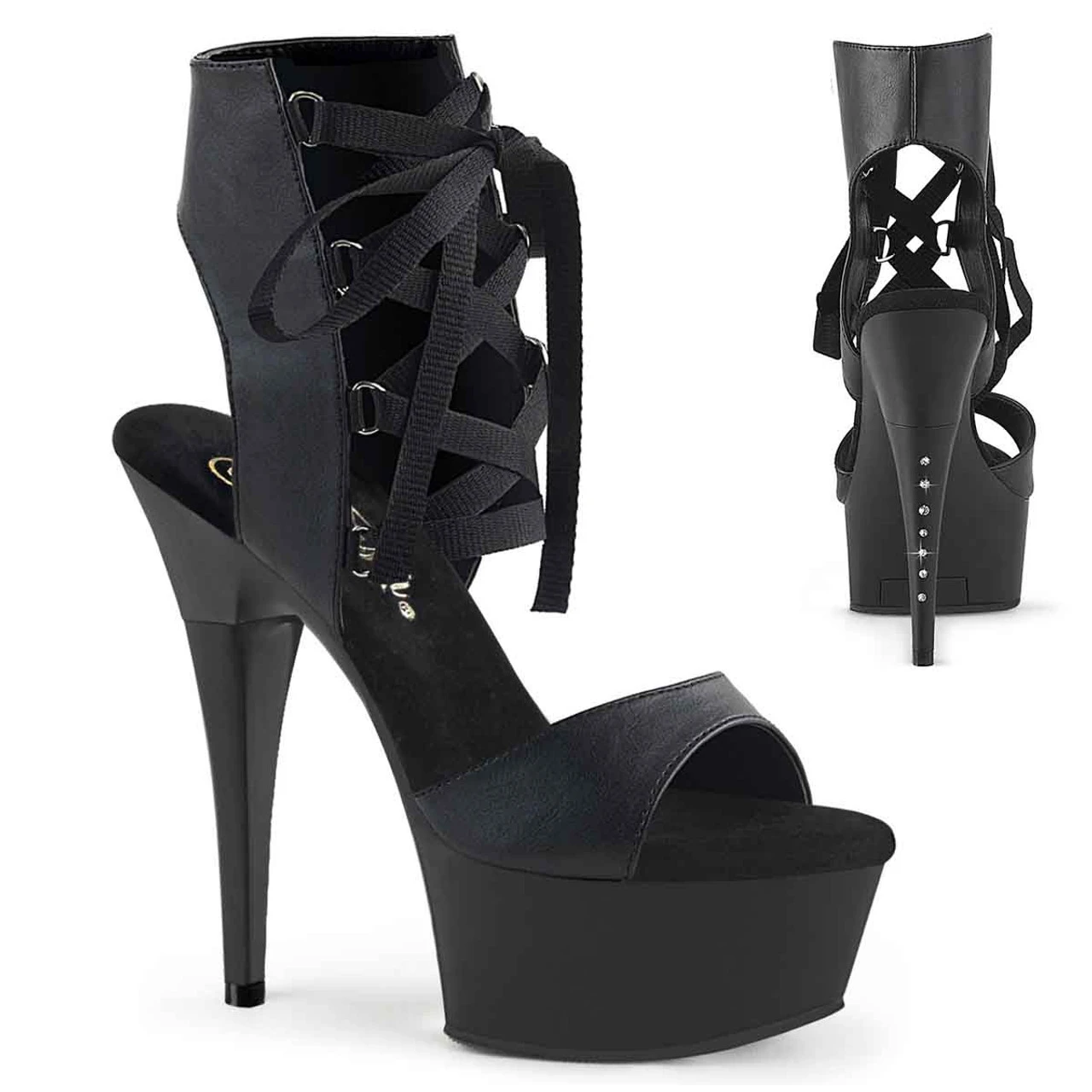 6″ (152mm) Heel, 1 3/4″ (44mm) Platform Lace-Up Fromt Sandal with Rhinestones on Back of Heel