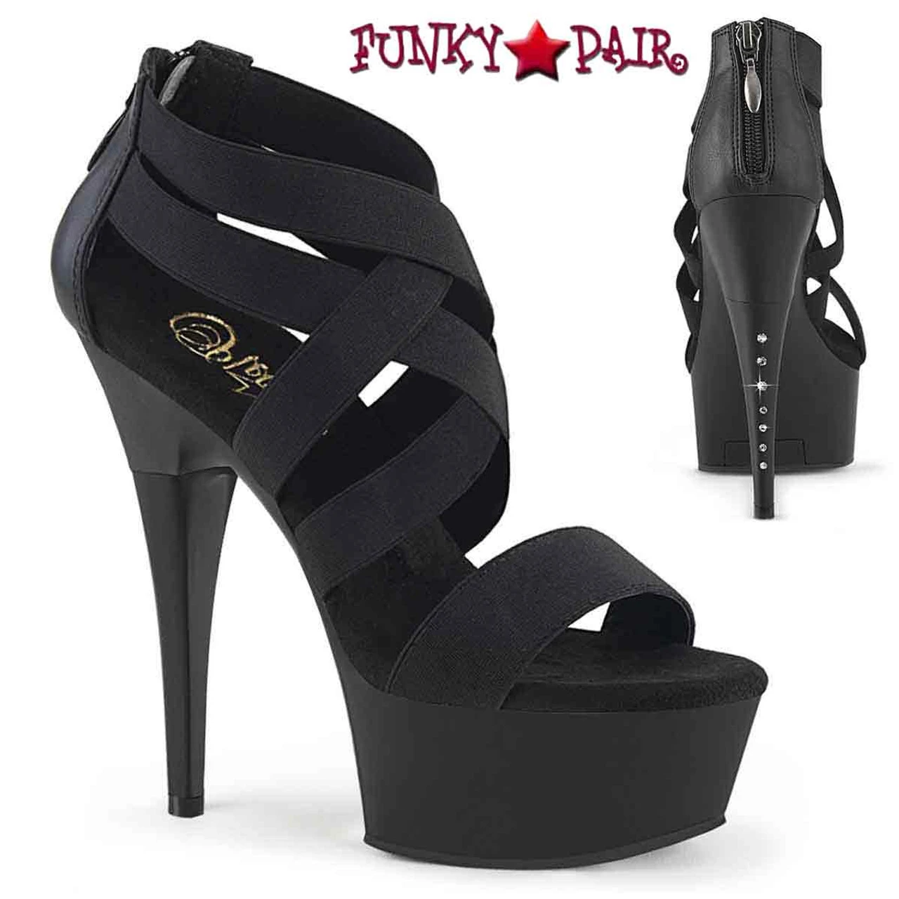6″ (152mm) Heel, 1 3/4″ (44mm) Platform Criss Cross Close Back Sandal, Back Zip Closure