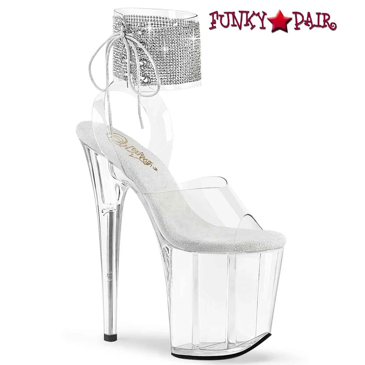 Approximately 8″ (200mm) Heel, 4″ (100mm) Platform Rhinestone Embellished Ankle Cuff Sandal
