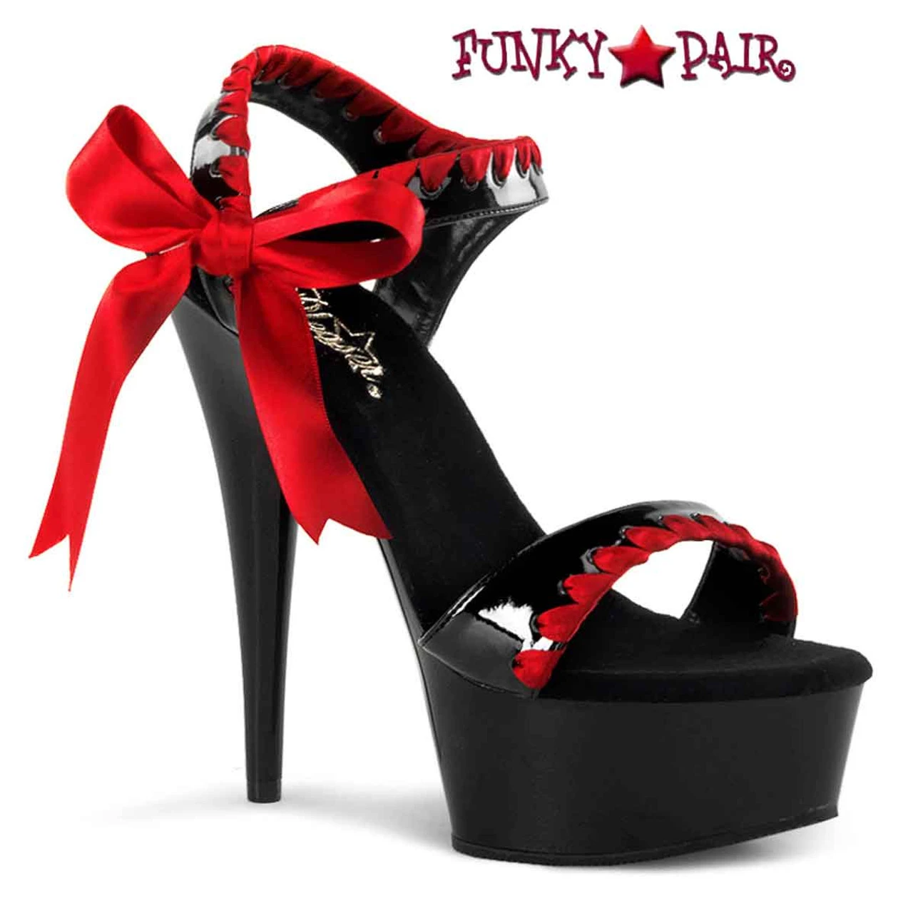Pleaser Shoes DELIGHT-615 Approximately 6 Inch Stiletto Heel Ankle Strap Platform Sandal with Ties Ribbon