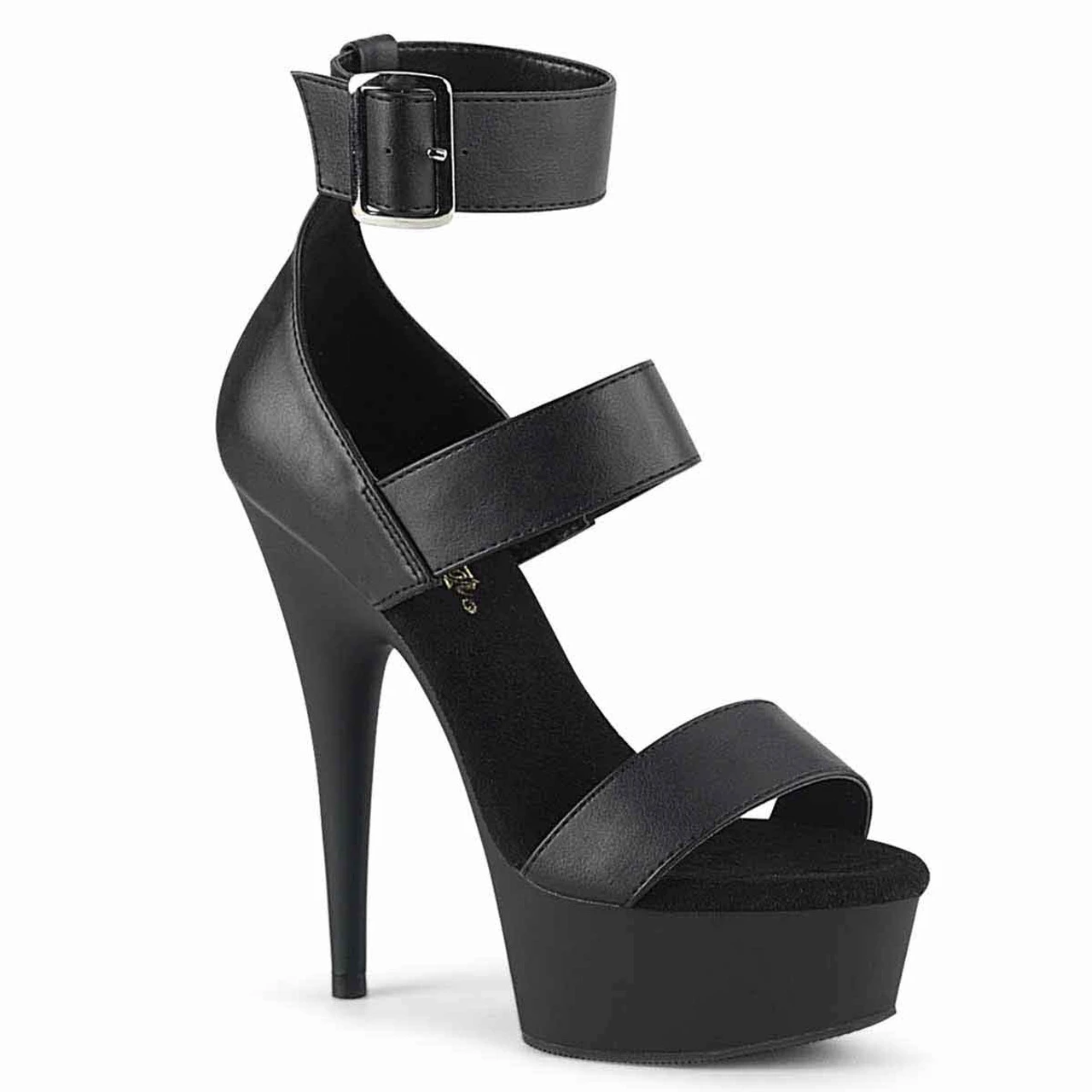 Approximately 6″ (152mm) Heel, 1 3/4″ (45mm) Platform Triple Band Open Toe Close Back Buckled Ankle Strap Sandal