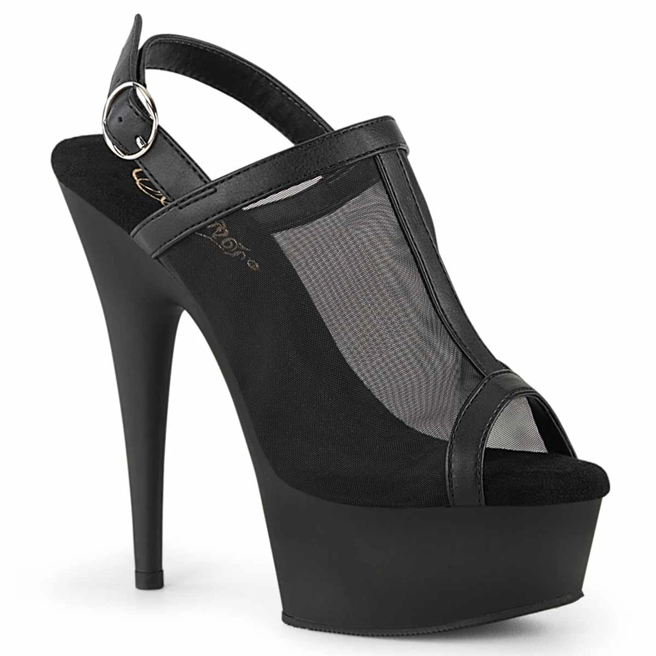 Approximately 6″ (152mm) Heel, 1 3/4″ (45mm) Platform Mesh Sling Back Sandal