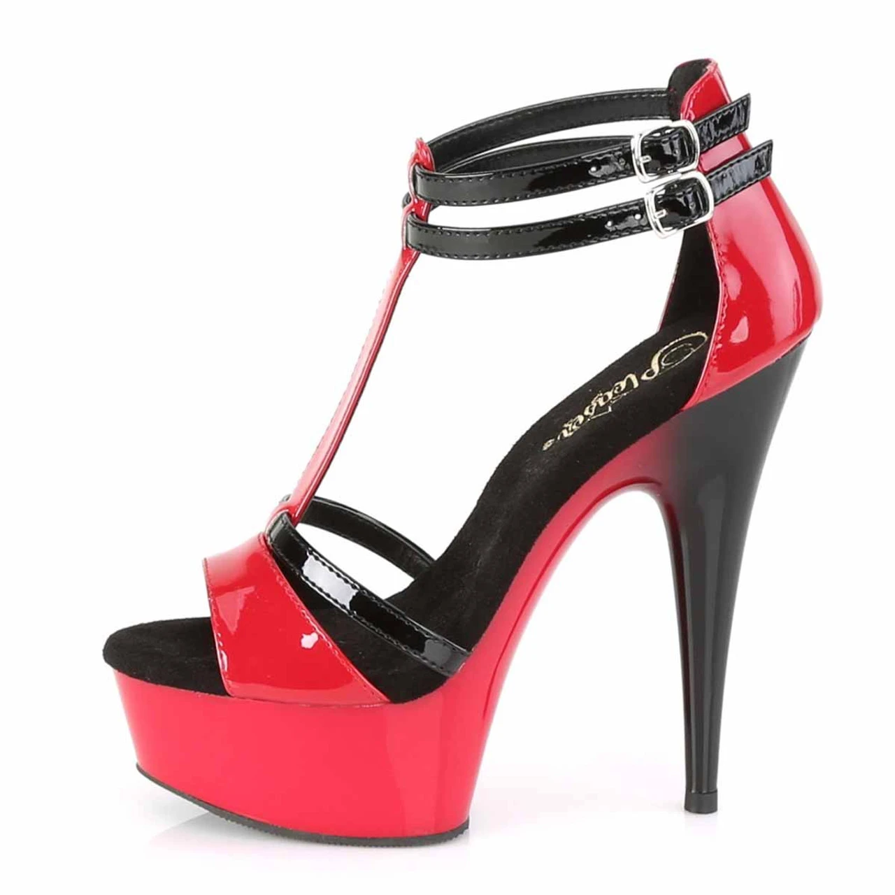 Pleaser Delight-663 Two Tone T-Strap Sandal Featuring Dual Ankle Straps Approximately 6 Inch (152mm) Heel, 1 3/4″ (45mm) Platform