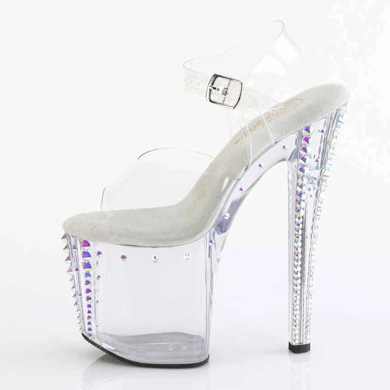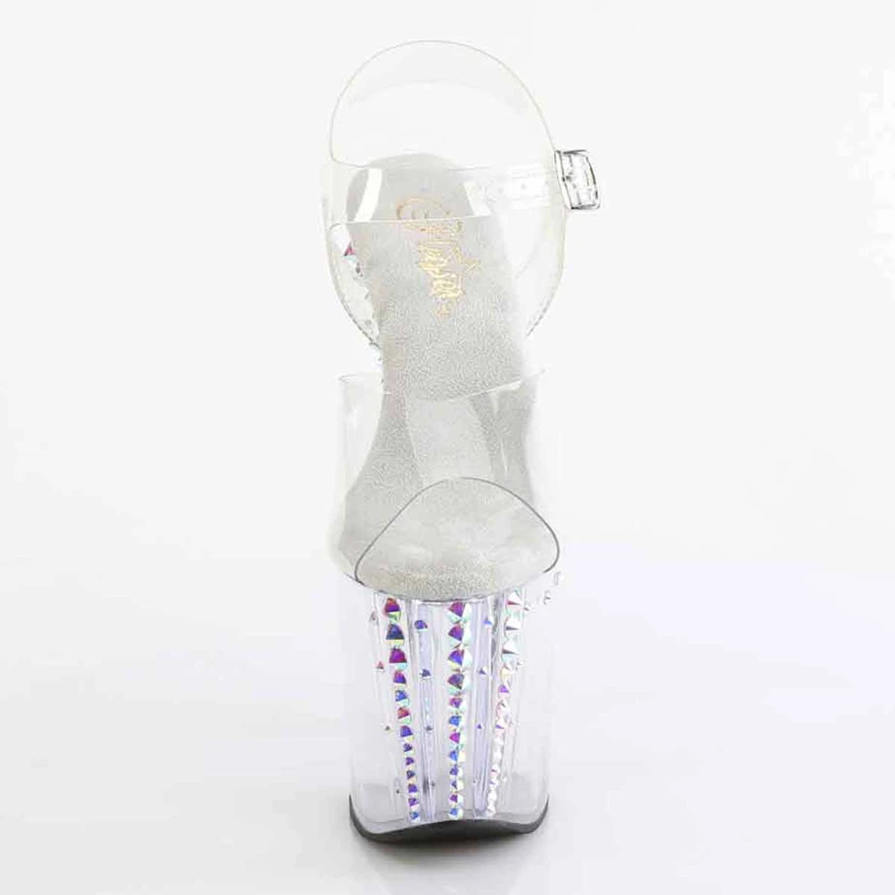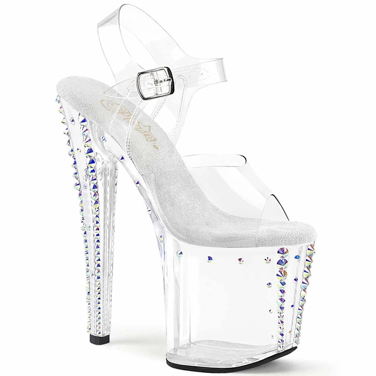 8″ (195mm) Heel, 3 3/4″ (95mm) Platform w/ Prismatic Linear Design at the Platform Front and Back of Heel Featuring AB Rhinestone Cone Studs on the Platform Front & Outer Side of the Platform Bottom & Heel