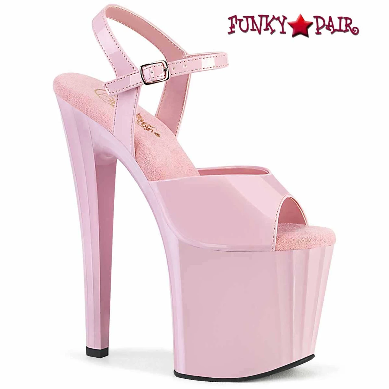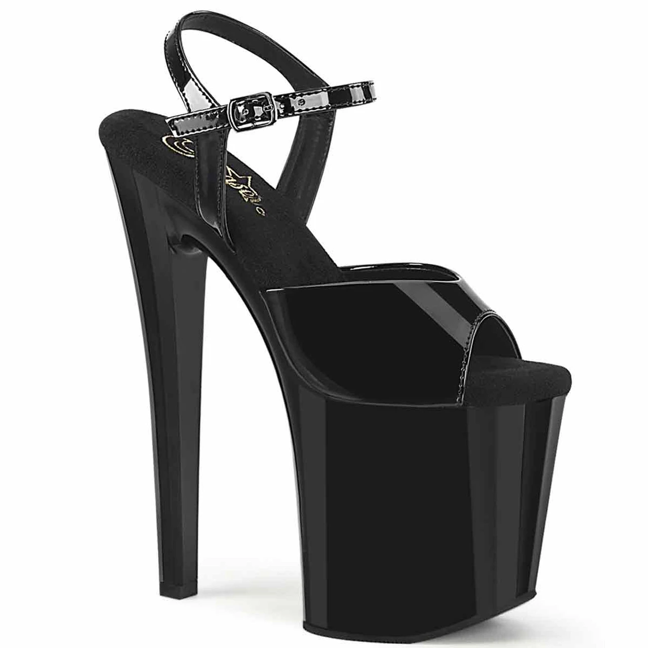 Ankle Strap Sandal Featuring Prismatic Linear Design at the Platform Front and Back of Heel. Approximately 8″ (195mm) Heel, 3 3/4″ (95mm) Platform