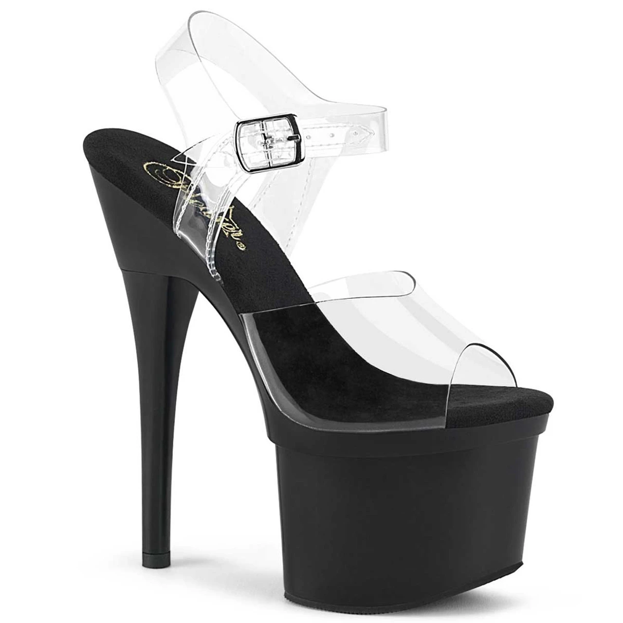 7″ (178mm) Heel, 3″ (76mm) Platform Clear Ankle Strap Sandal