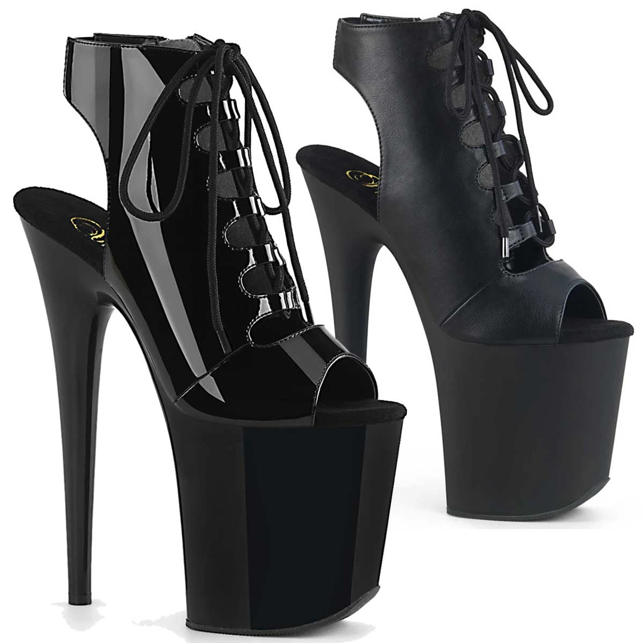 Pleaser Shoes Flamingo-800-20, Approximately 8 Inch (200mm) Heel, 4 Inch (100mm) Platform Open Toe/Heel Sandal with Lace-Up Ties and Wrapping Straps Closure, Full Inside Zip Closure