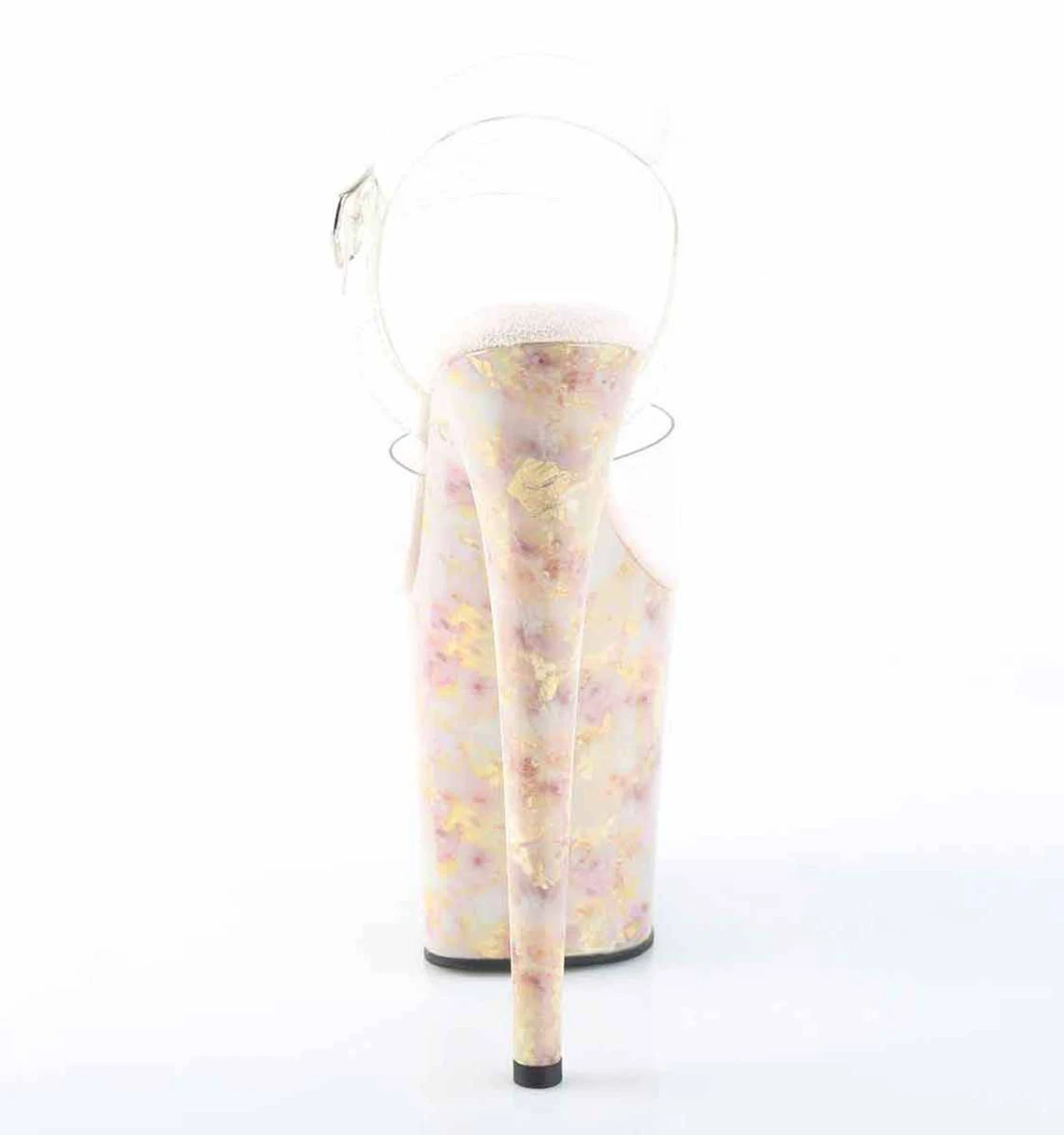 8″ (200mm) Heel, 4″ (100mm) Platform Ankle Strap Sandal Featuring Marble Effect Printed Platform Bottom