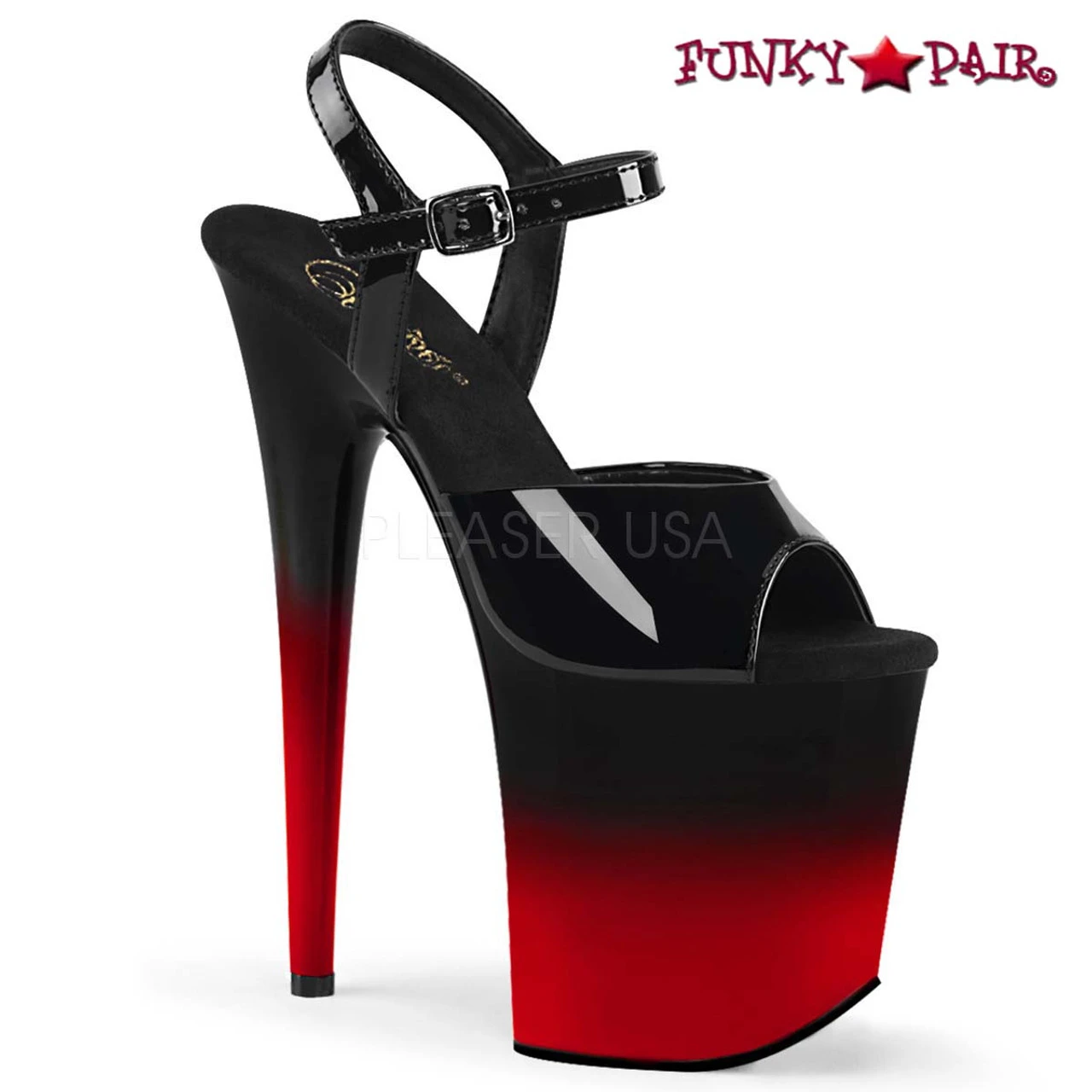 Pleaser FLAMINGO-809BR-H Approximately 8 Inch (200mm) Heel, 4 Inch (100mm) Platform Ankle Strap Sandal Featuring Two Tone Platform Bottom and Heel