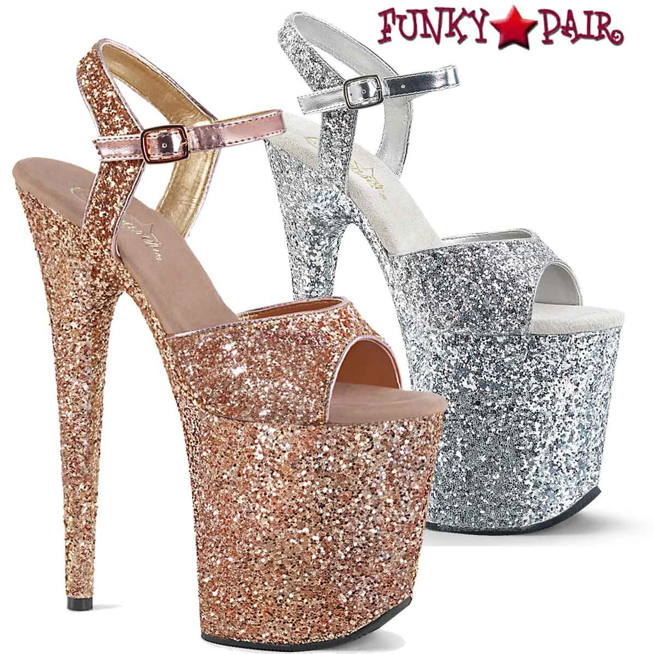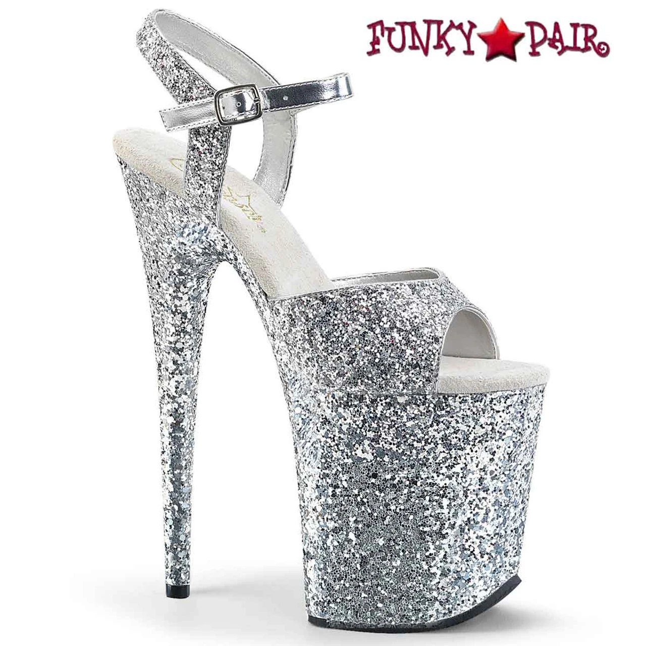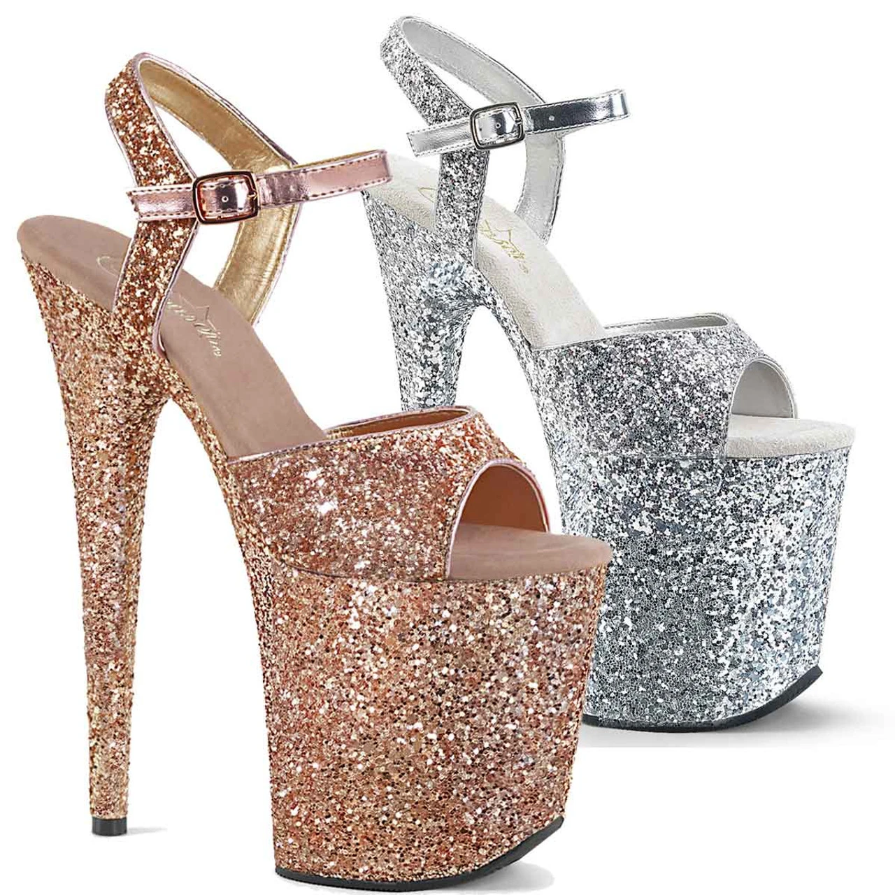Pleaser Shoes Flamingo-810LG Approximately 8 Inch (20.3cm) Heel, 4 Inch (10.2cm) Platform Glitter Ankle Strap Sandal