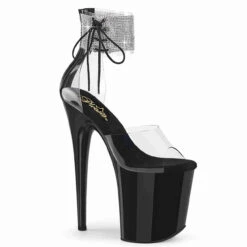 Approximately 8″ (200mm) Heel, 4″ (100mm) Platform Close Back Rhinestone Embellished Ankle Cuff Sandal w/Side Lacing, Back Zip Closure