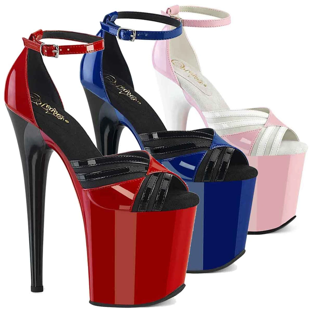 8″ (200mm) Heel, 4″ (100mm) Platform Two Tone Open Toe Close Back Ankle Strap Sandal