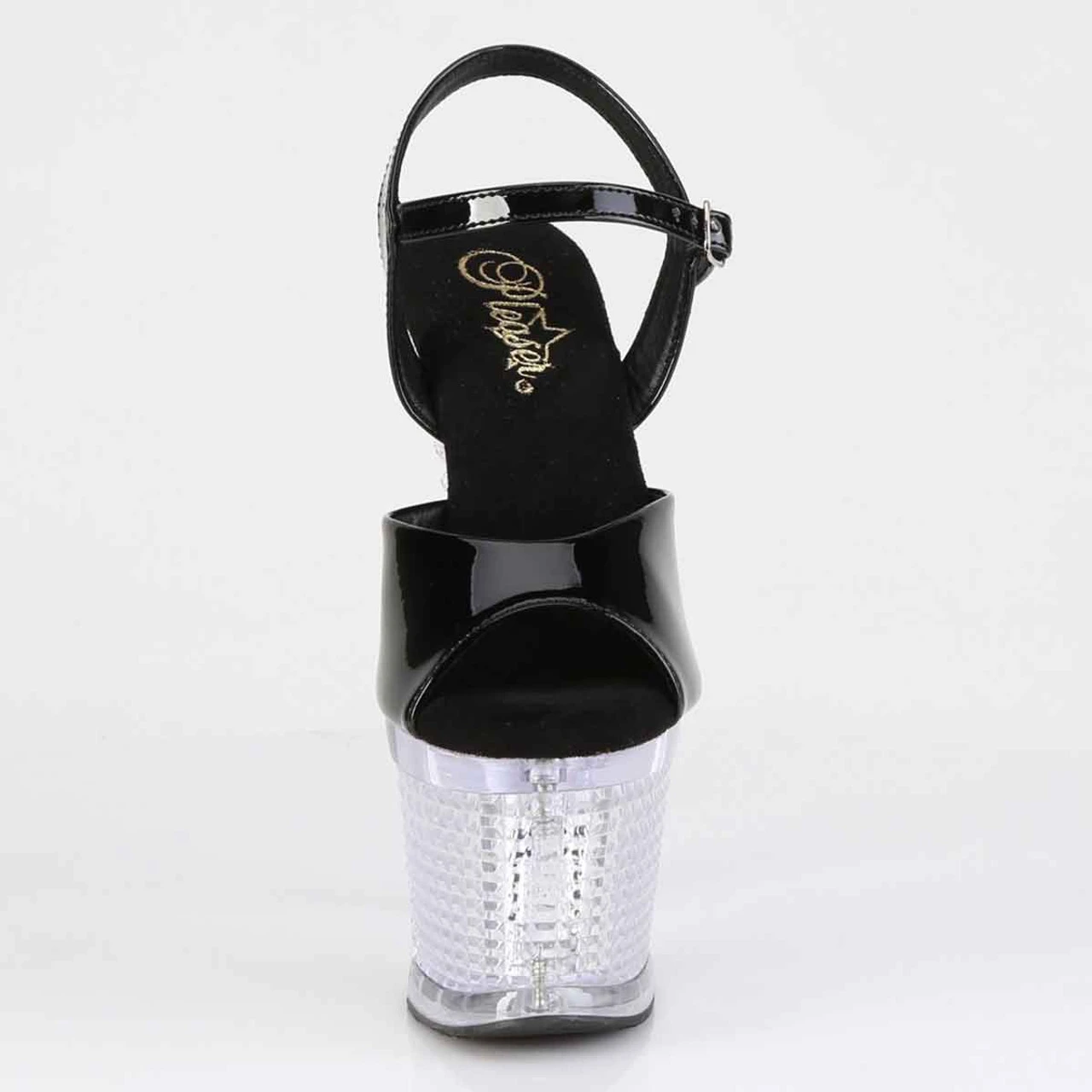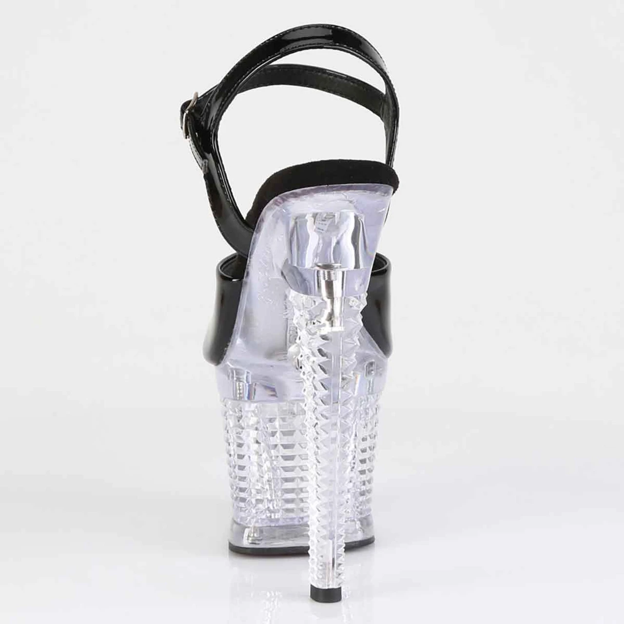 7″ (178mm) Heel, 3″ (76mm) Textured Platform USB Chargeable LED Light-Up Ankle Strap Sandal w/Multi Color Disco Lighting Effects in Various Patterns/Settings