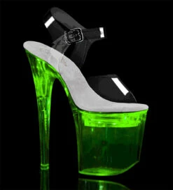 Pleaser Flashdance-808 Approximately 8″ (200mm) Heel, 4″ (100mm) Platform USB Chargeable LED Light-Up Ankle Strap Sandal w/ Multiple Static/ Changing Color Options & Light Settings