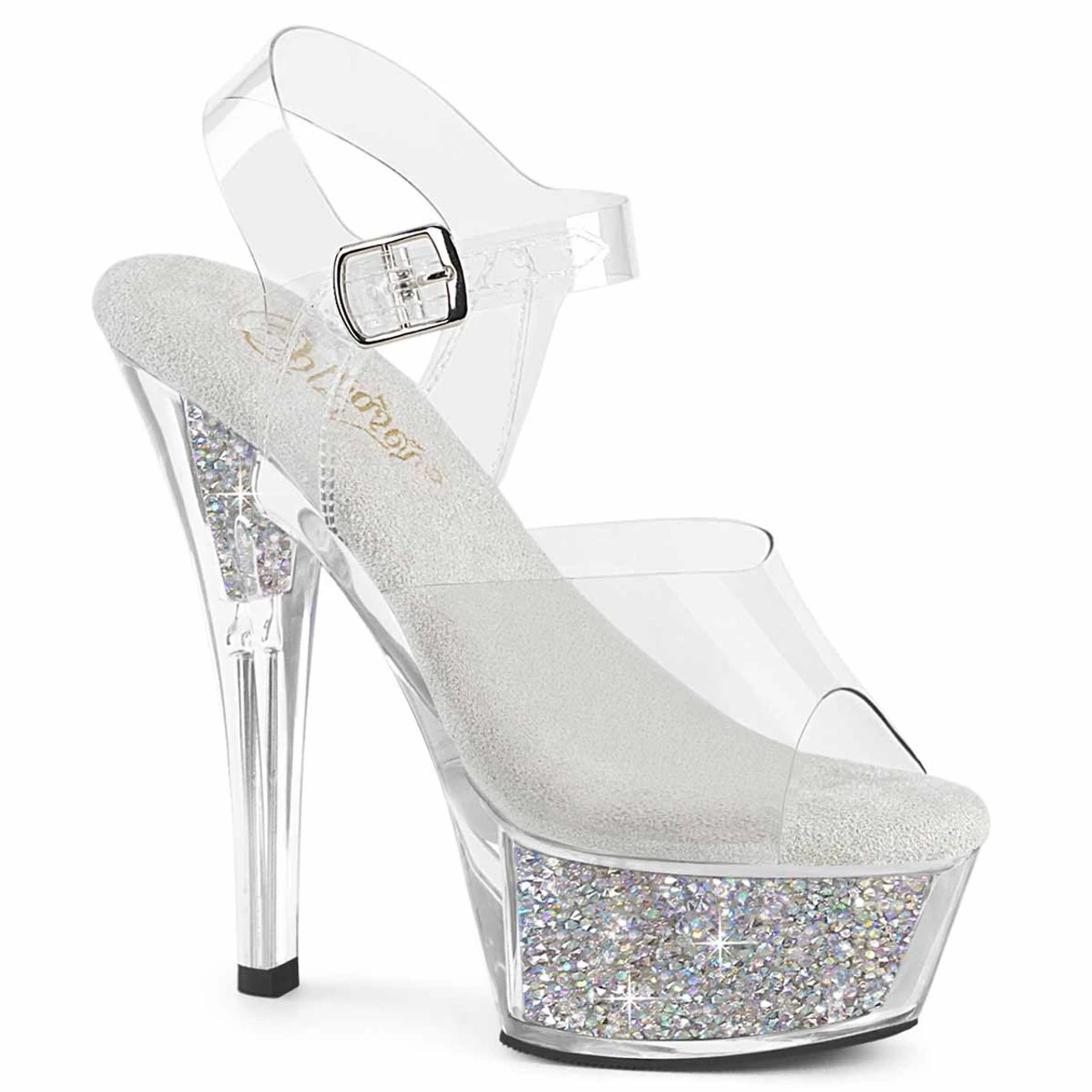 6″ (152mm) Heel, 1 3/4″ (45mm) Platform Featuring AB Rhinestones Inserted in the Platform and Heel