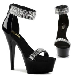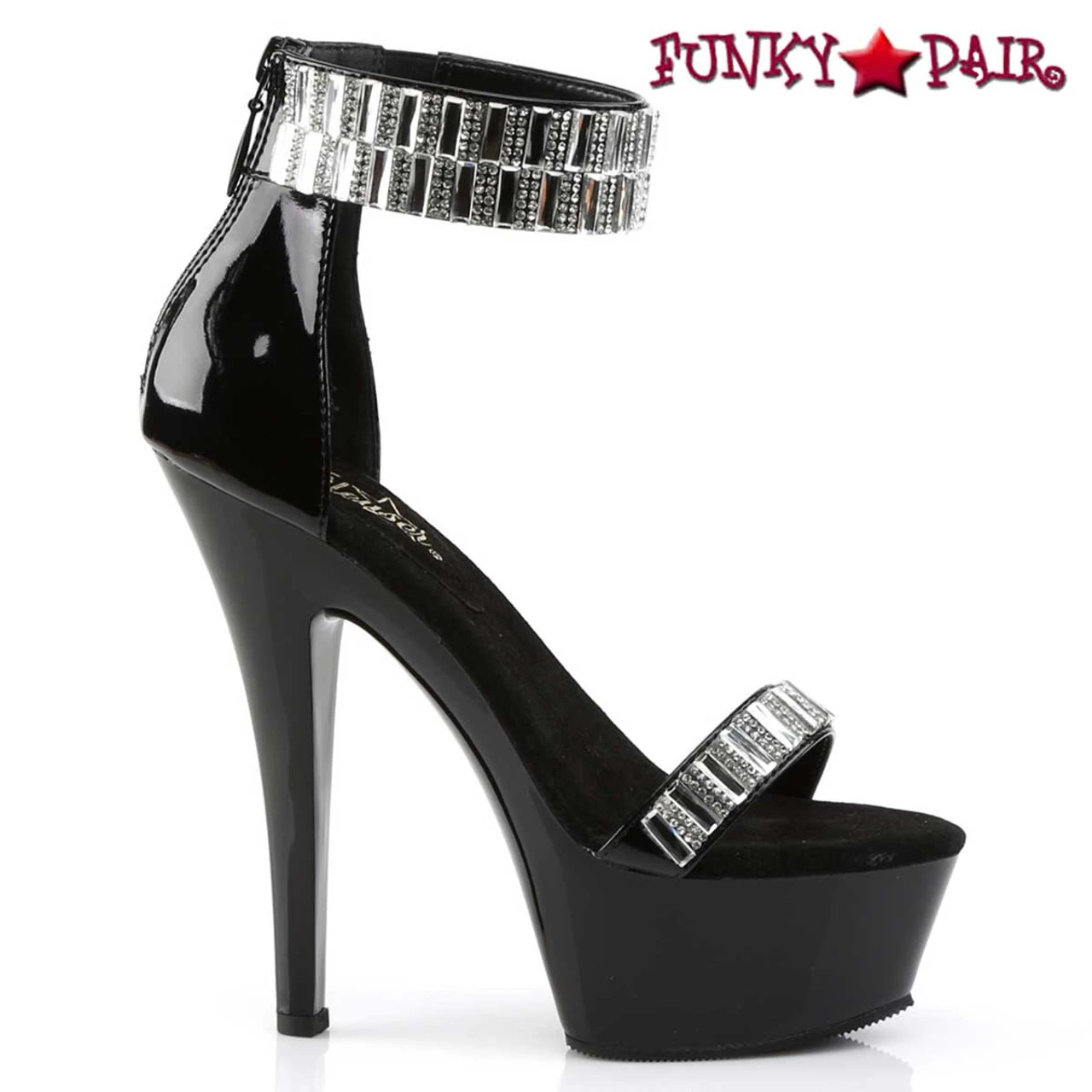 Pleaser Shoes Kiss-269RS Approximately 6 Inch (15.25cm) Heel, 1 3/4 Inch (4.5cm) Platform Closed Back Sandal Featuring Rhinestone and Mirrors Embellished All Over Ankle Cuff and Toe Strap, Back Zip Closure