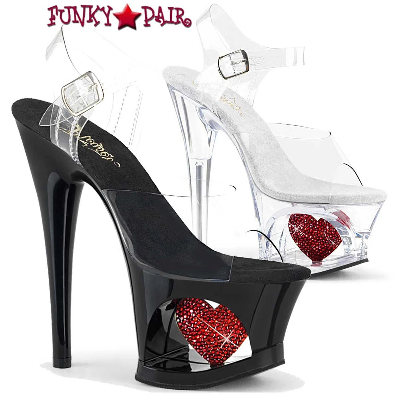 Pleaser Shoes Moon-708HRS Approximately 7 Inch (178mm) Heel, 2 3/4 Inch (70mm) Cut-Out Platform Ankle Strap Sandal Featuring Rhinestone Heart In the Platform. FREE Shipping U.S. 48 States