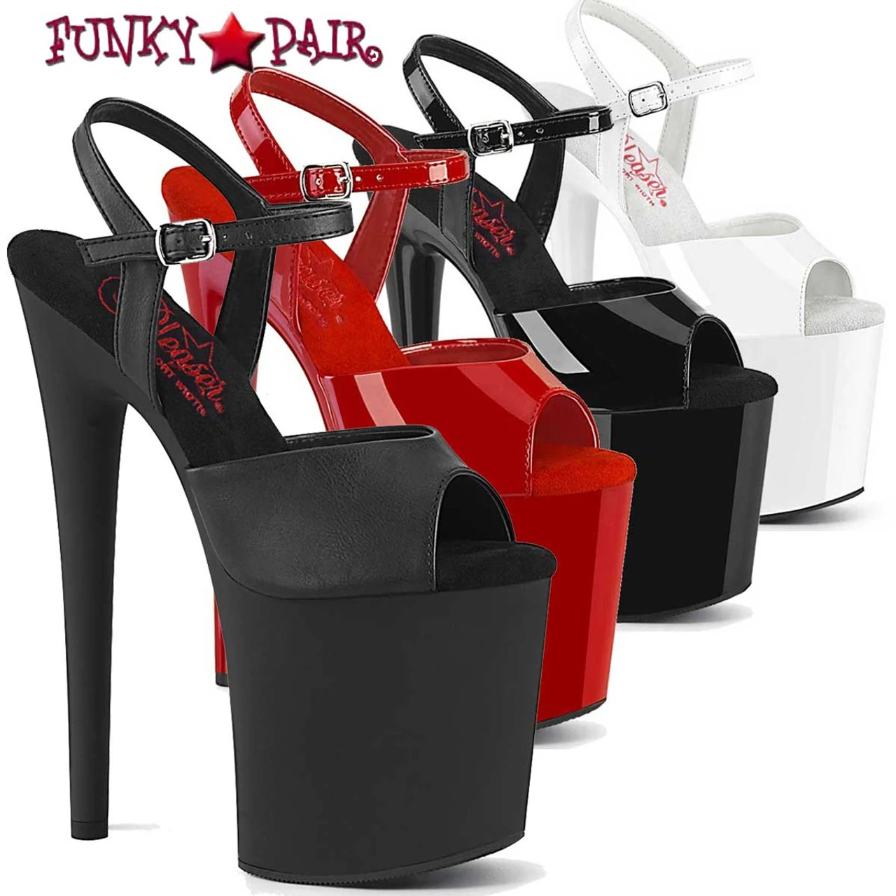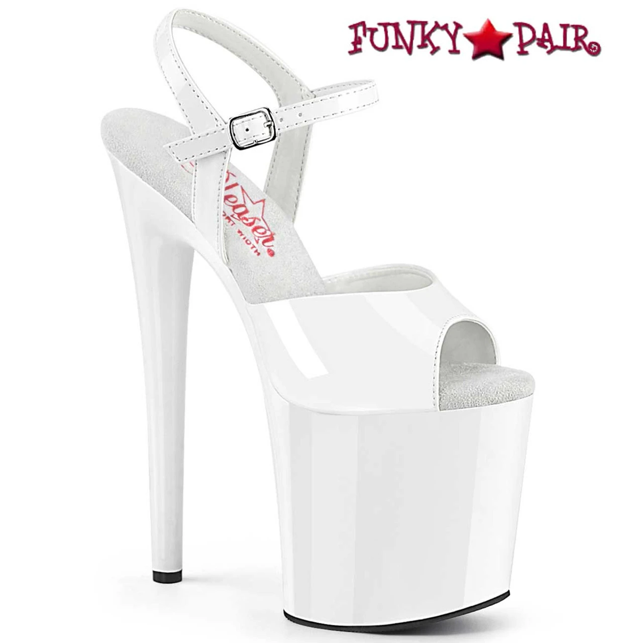 Comfort Width Ankle Strap Sandal. Approximately 8″ (200mm) Heel, 4″ (100mm) Platform