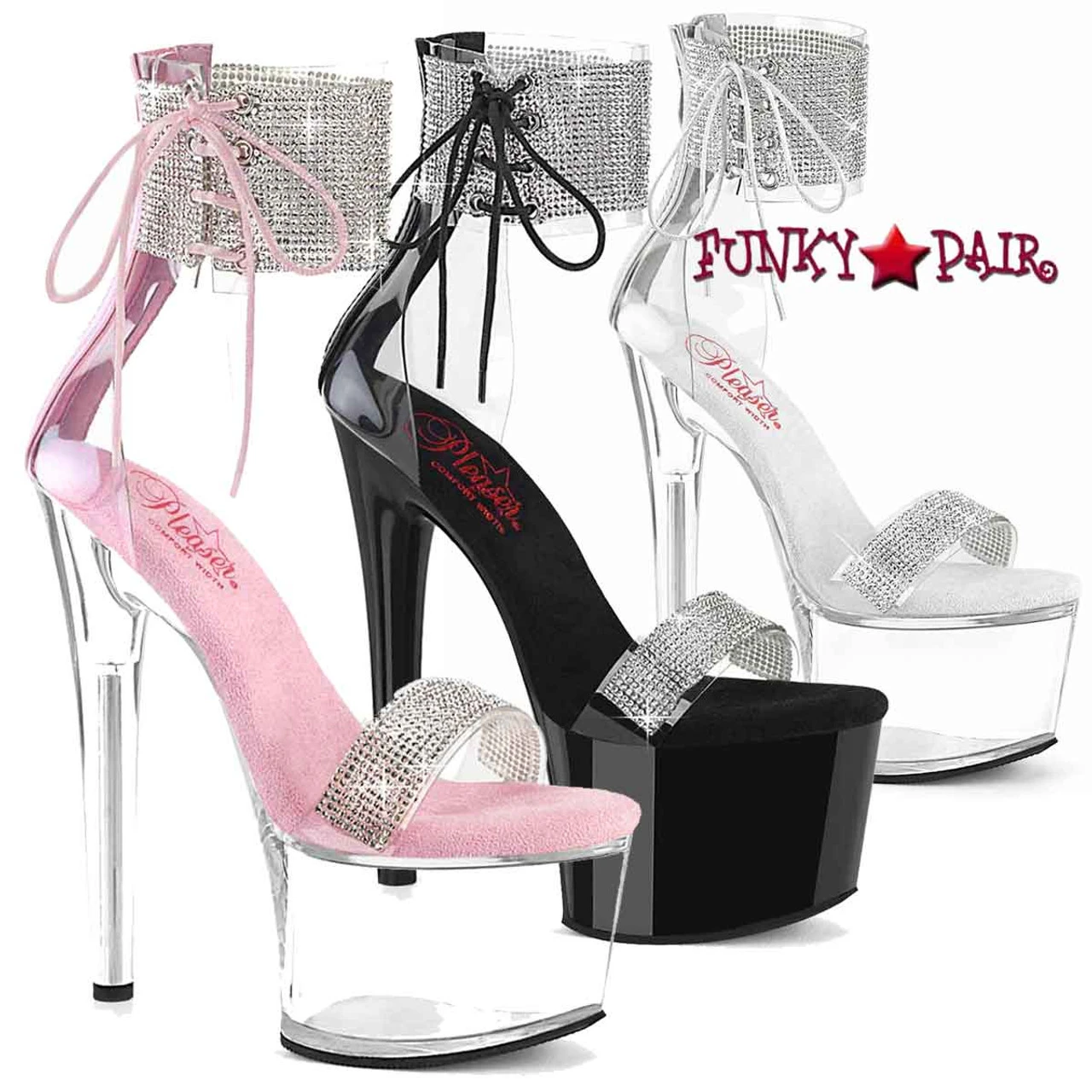 PLEASER ENCHANT-708RS-01, 8 Inch Platform Sandal With Rhinestones