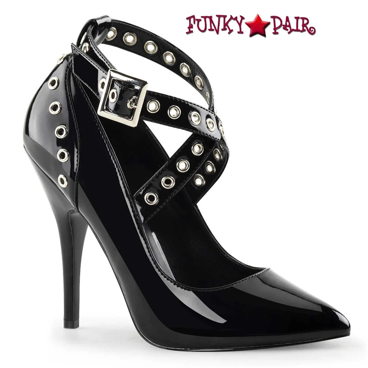 Pleaser Shoes Seduce-443 Approximately 5 Inch high heels criss cross pump with eyelet-hole punch