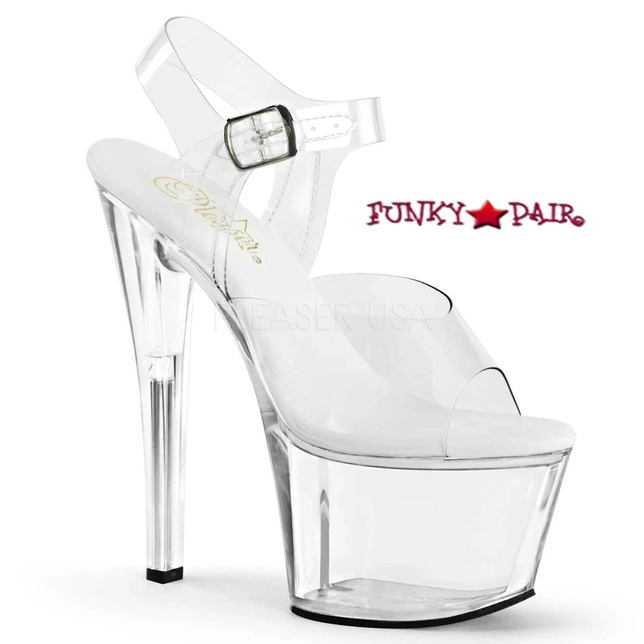 Pleaser Shoes | Sky-308VL Approximately 7 Inch (18cm) Heel, 2 3/4 Inch (7cm) Platform Ankle Strap Sandal Featuring Vegan Leather Insole