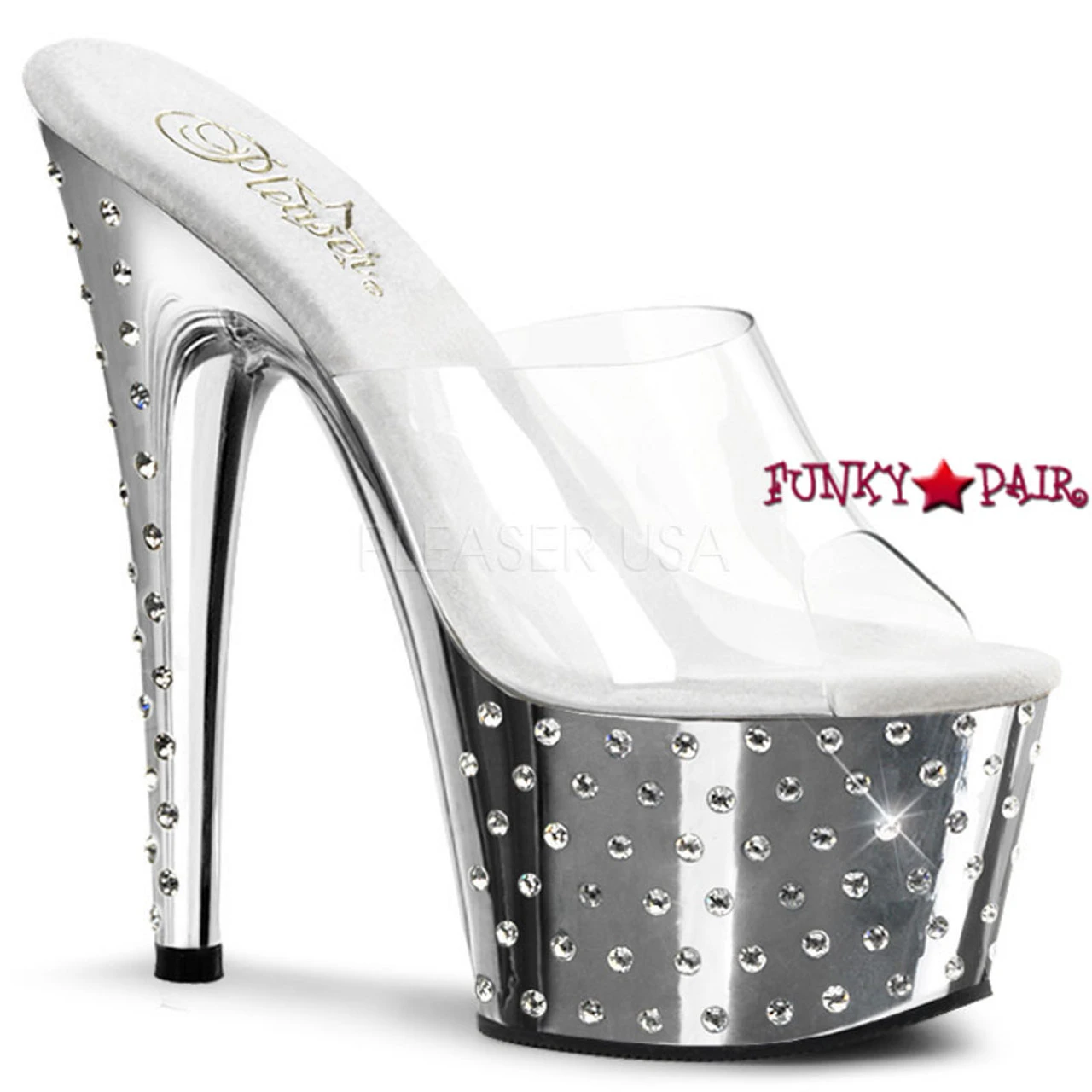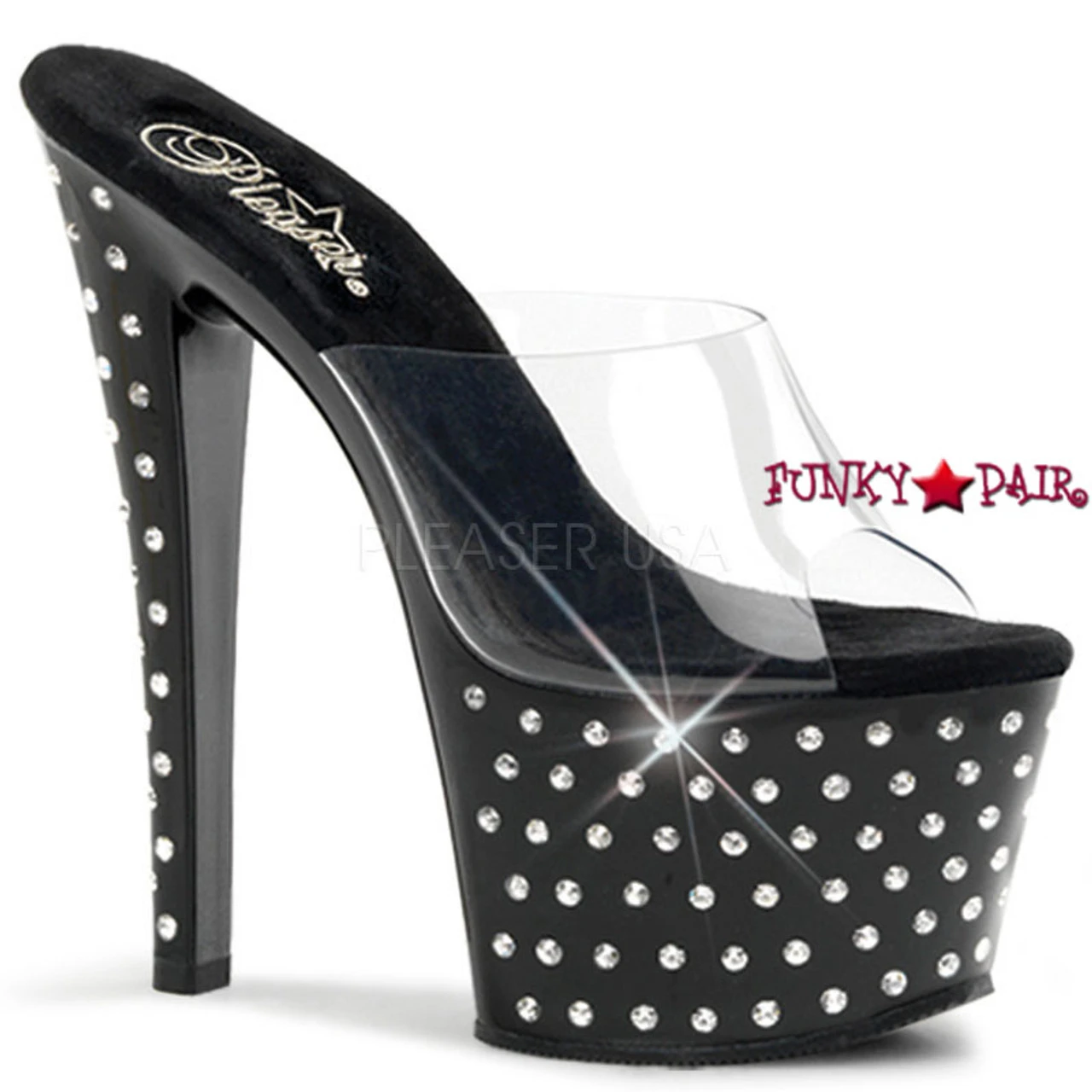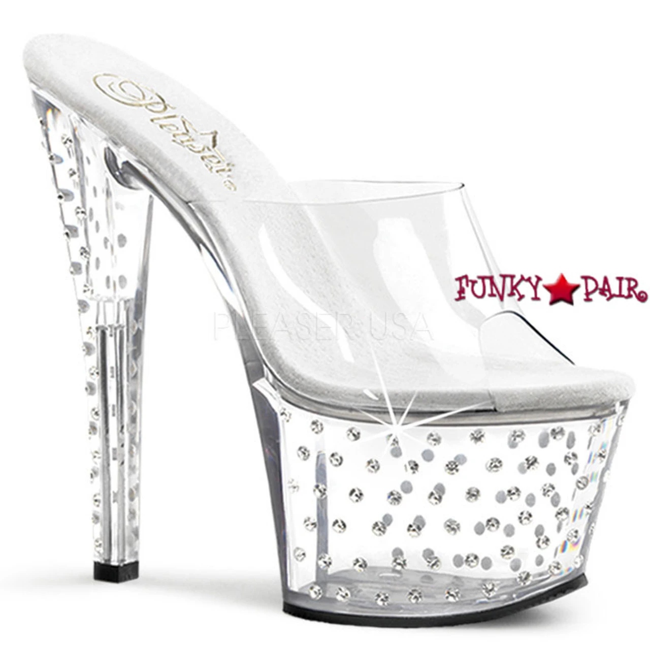 Pleaser Shoes Stardust-701 7 Inch Stiletto Heel Rhinestones Studded Platform Slide