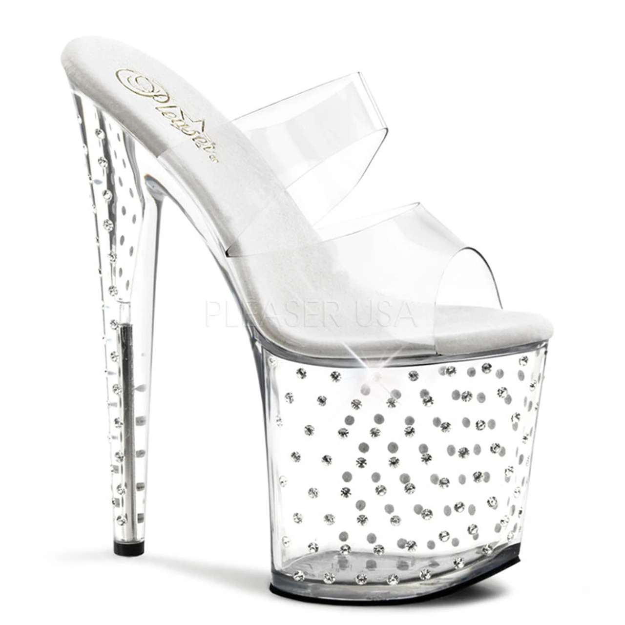 Pleaser Shoes Stardust-802 Approximately 8 Inch Two Band Slide Featuring Rhinestones Studded Platform Bottom