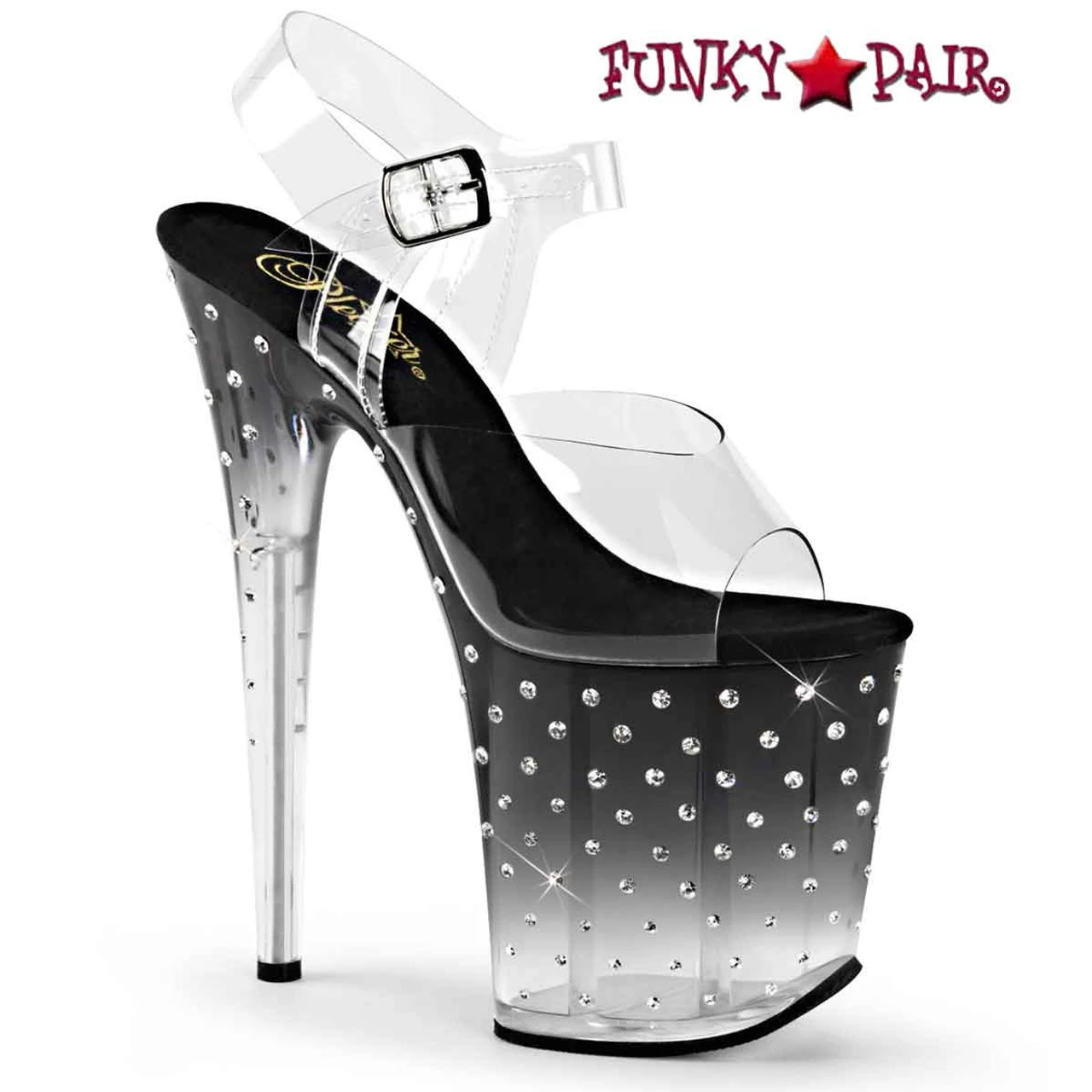 Pleaser Shoes Stardust-808T 8 Inch (20.25cm) Heel, 4 Inch (10.25cm) PF Ankle Strap Sandal Featuring Tinted, Rhinestone Studded Platform Bottom