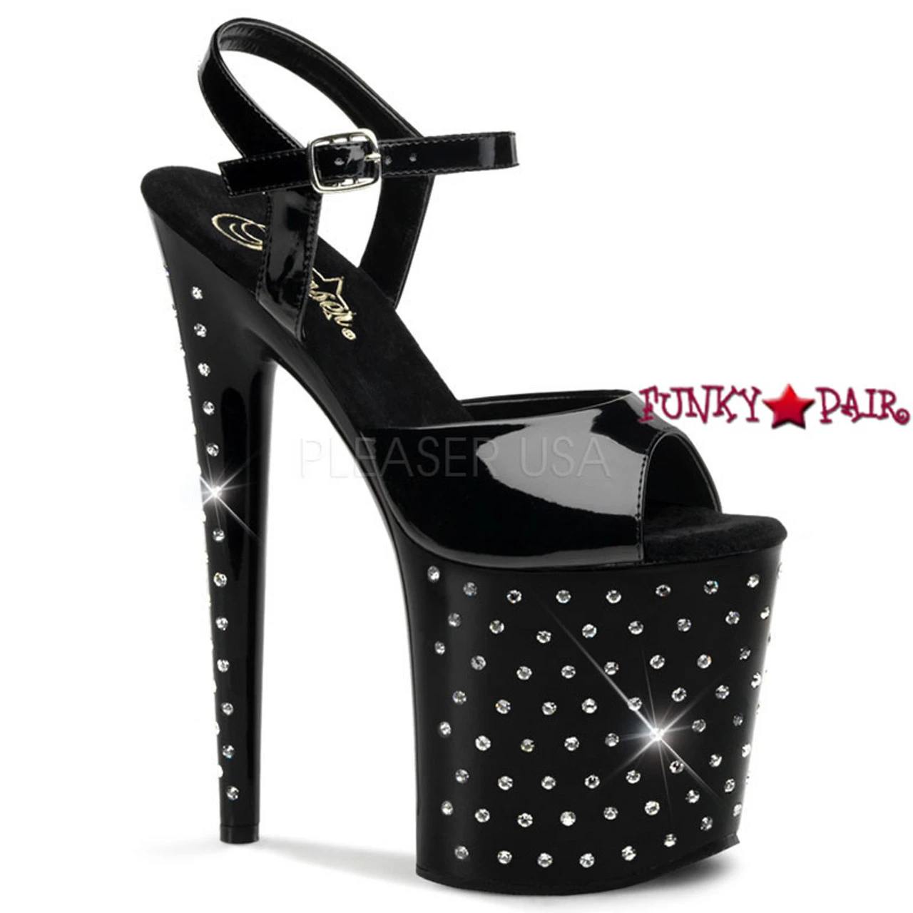 Pleaser Shoes Stardust-809 8 Inch Stiletto Heel Ankle Strap Rhinestones Studded Platform Sandal