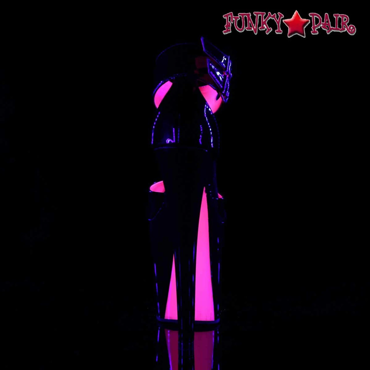 Pleaser Shoes Xtreme-875TT Approximately 8 Inch (200mm) Heel, 4 Inch (100mm) Platform Two Tone d’ Orsay Sandal Featuring Dual Buckle Ankle Cuffs and Contrast UV Reactive Platform Bottom