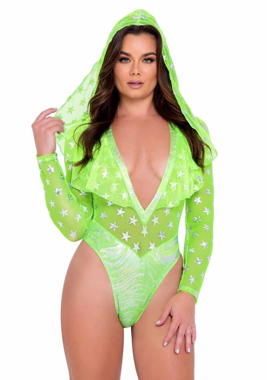 Stay cool and look cool in this funky hooded romper! Perfect for both nights out and lounging, this mesh romper features stars