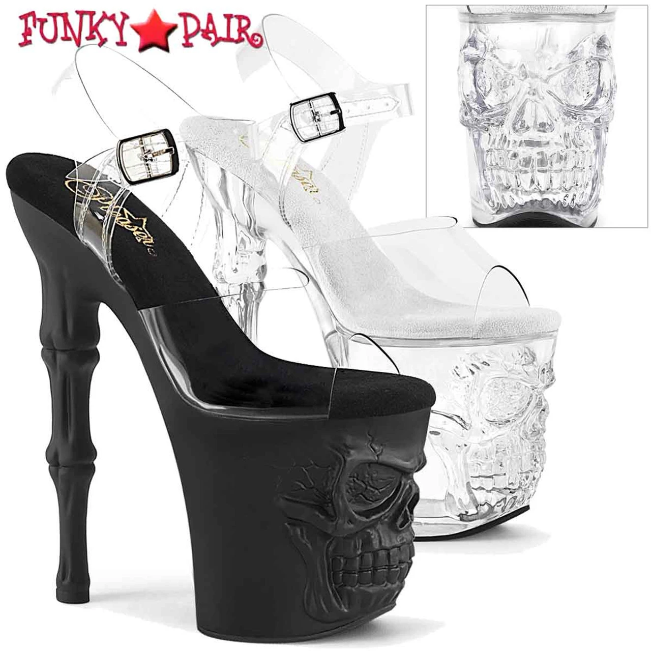 8″ (200mm) Finger Bone Heel, 4″ (100mm) Platform Ankle Strap Sandal Featuring Skull & Bones Platform Bottom