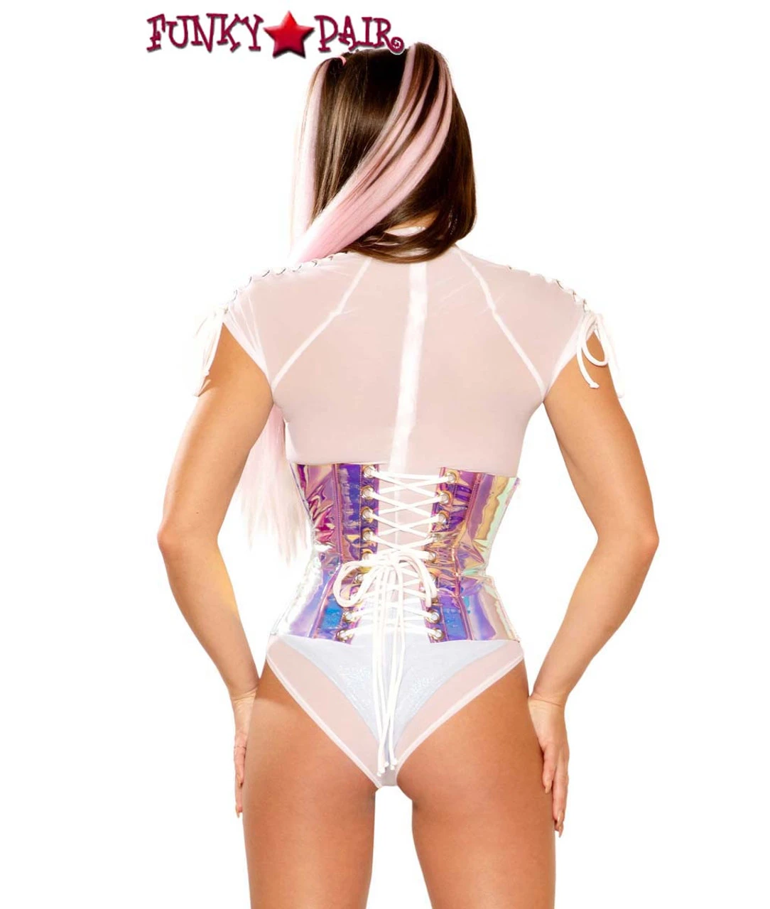 Take your look to the next level with this waist cincher made of lustrous holographic vinyl! It’s the perfect way to get a little extra glitz in your wardrobe and add a hint of sci-fi glamour. Shine on!