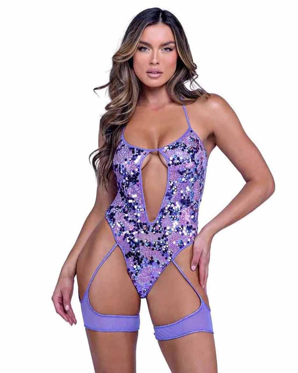 Roma PR-6420, Sequin Keyhole Romper With Attached Leg Straps