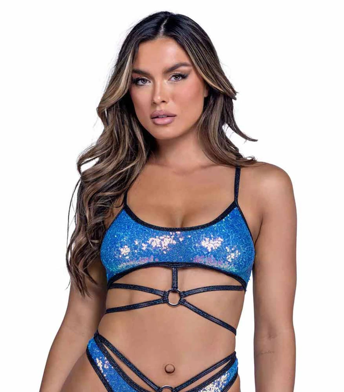Roma PR-6429, Sequin Cropped Top With Strap Detail
