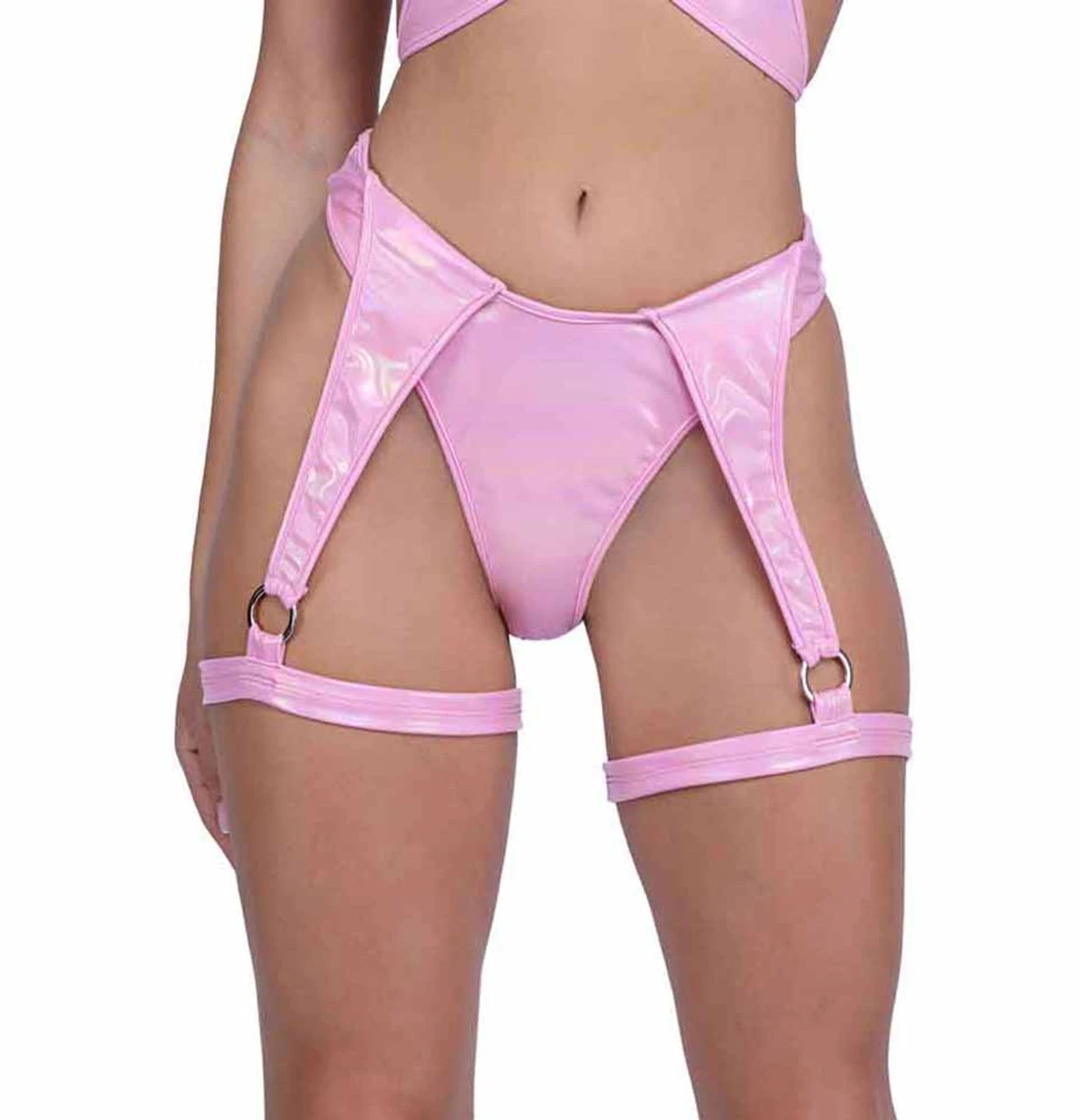 1PC Metallic Iridescent Shorts with Attached Leg Wrap and Thong Back