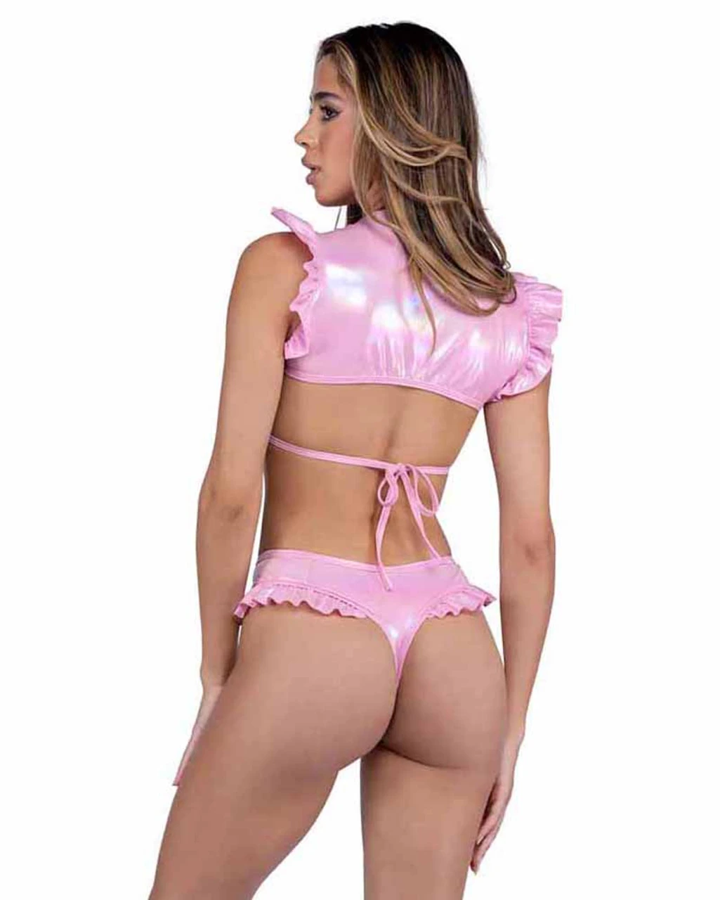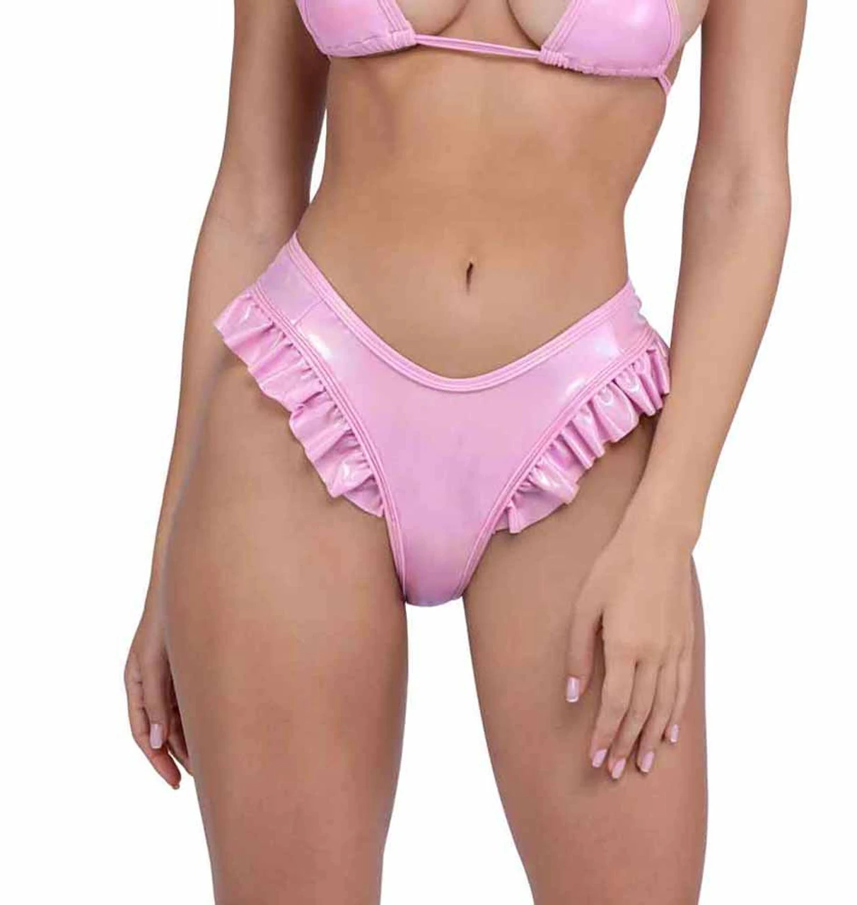 1PC Metallic Iridescent Ruffled Shorts with Thong Back