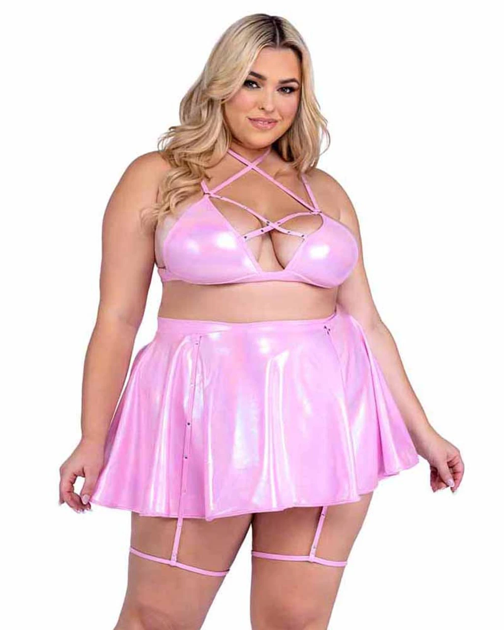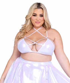 1PC Extended Size Metallic Iridescent Criss Cross Bikini Top with Rhinestone Detail and Back Hook Closure