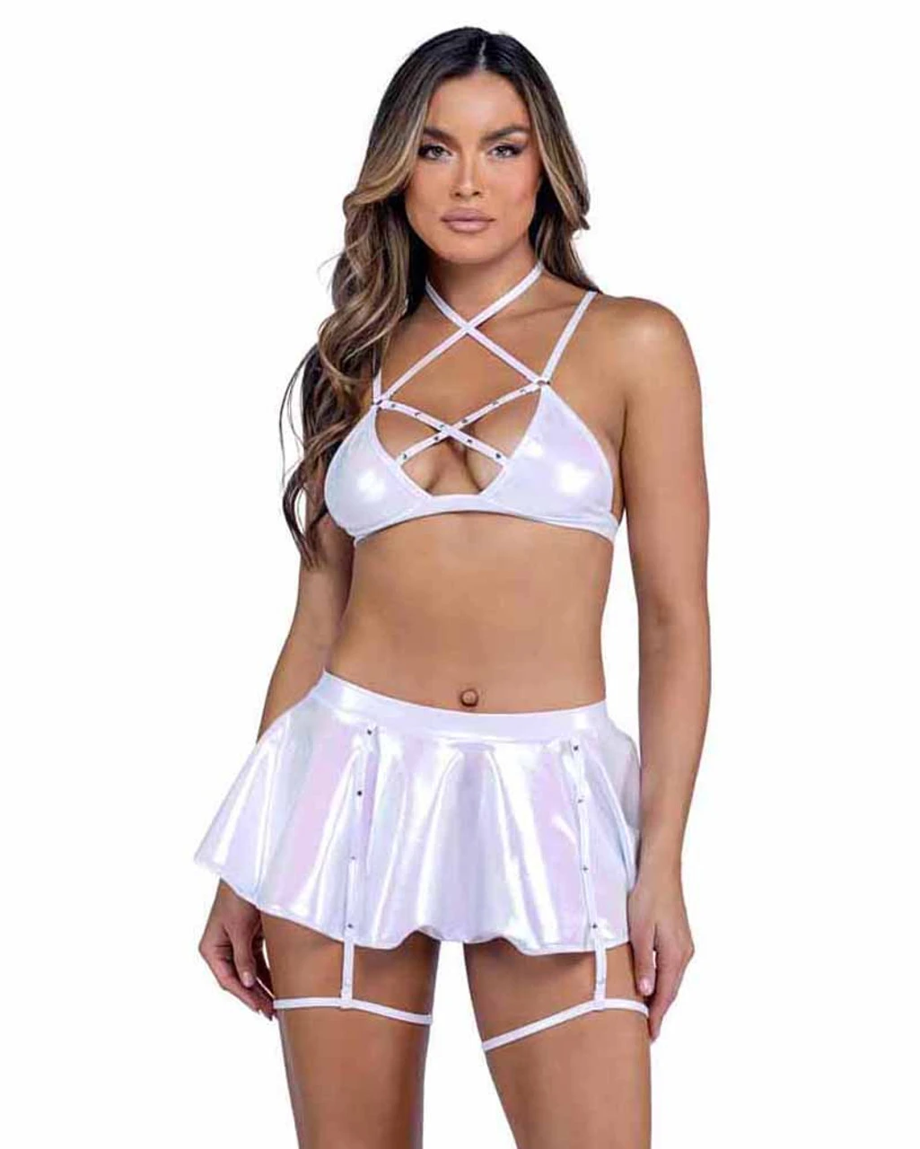 1PC Metallic Iridescent Skirt with Attached Rhinestone Detail Straps