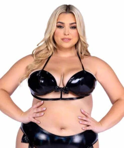 Roma PR-6475X, Plus Size Vinyl Bikini Top With Bow Detail
