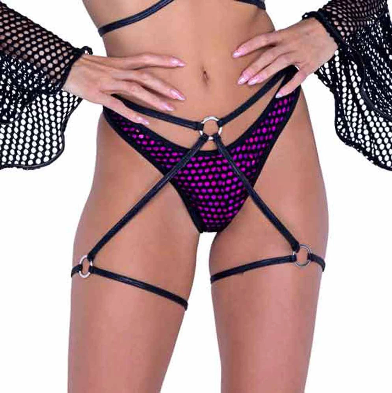 1PC Shimmer Lined Fishnet Cheeky Shorts with Attached Waist Leg Strap