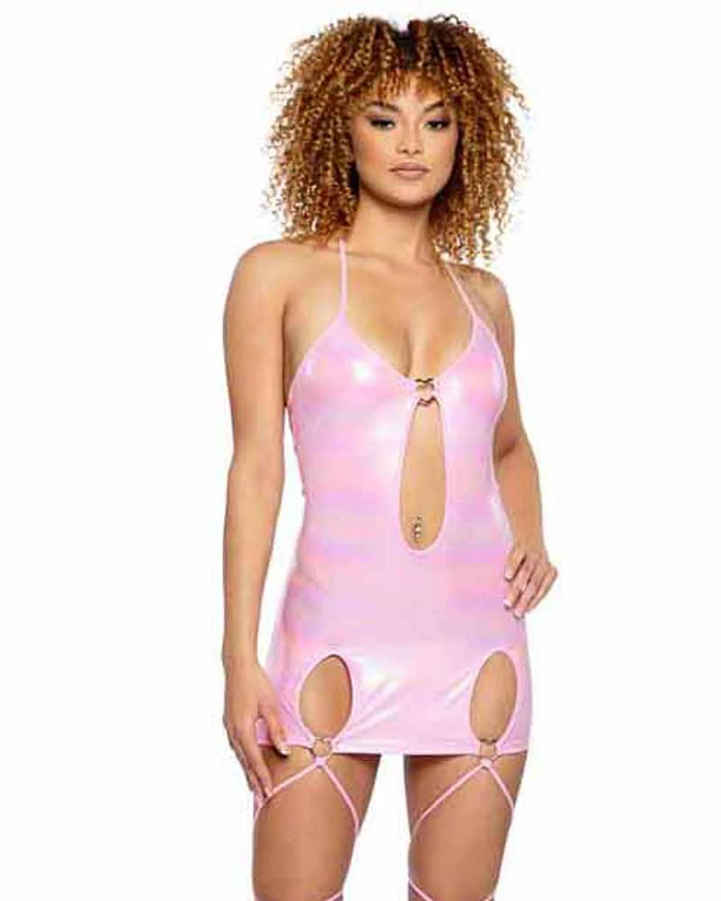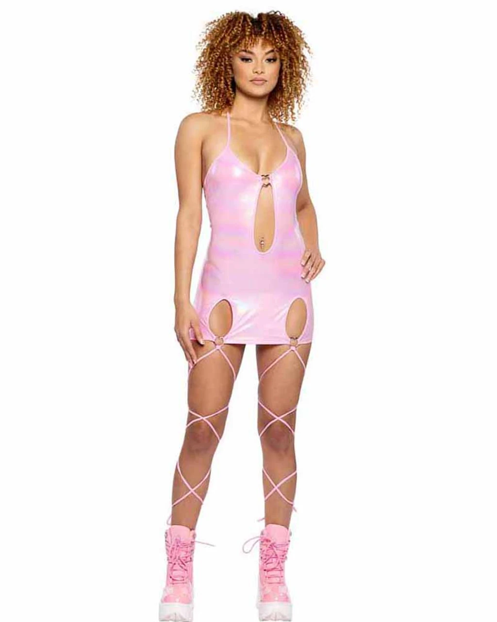 Roma PR-6543, Iridescent Cutout Dress With Attached Leg Wraps
