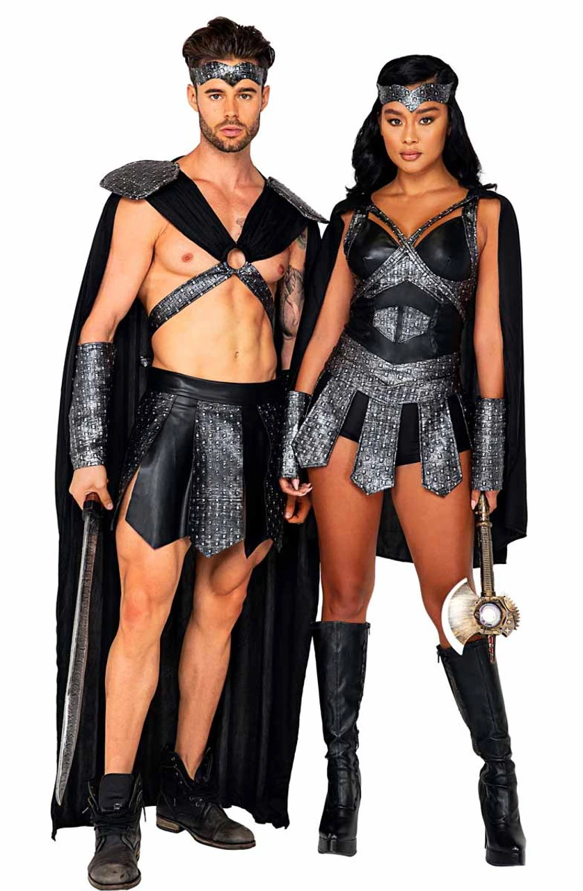 5pc Warrior Princess Costume Includes: Bodice, Criss-Cross Cape, Paneled Belt, Shorts, Gauntlets and Headpiece. Axes is not included