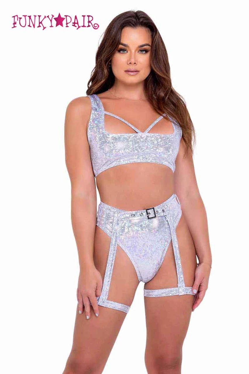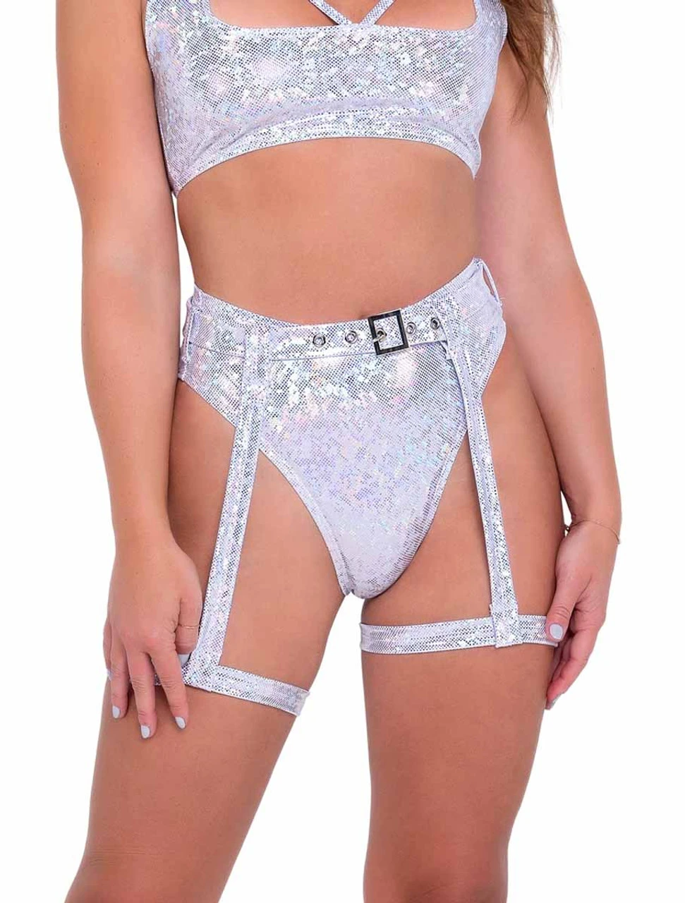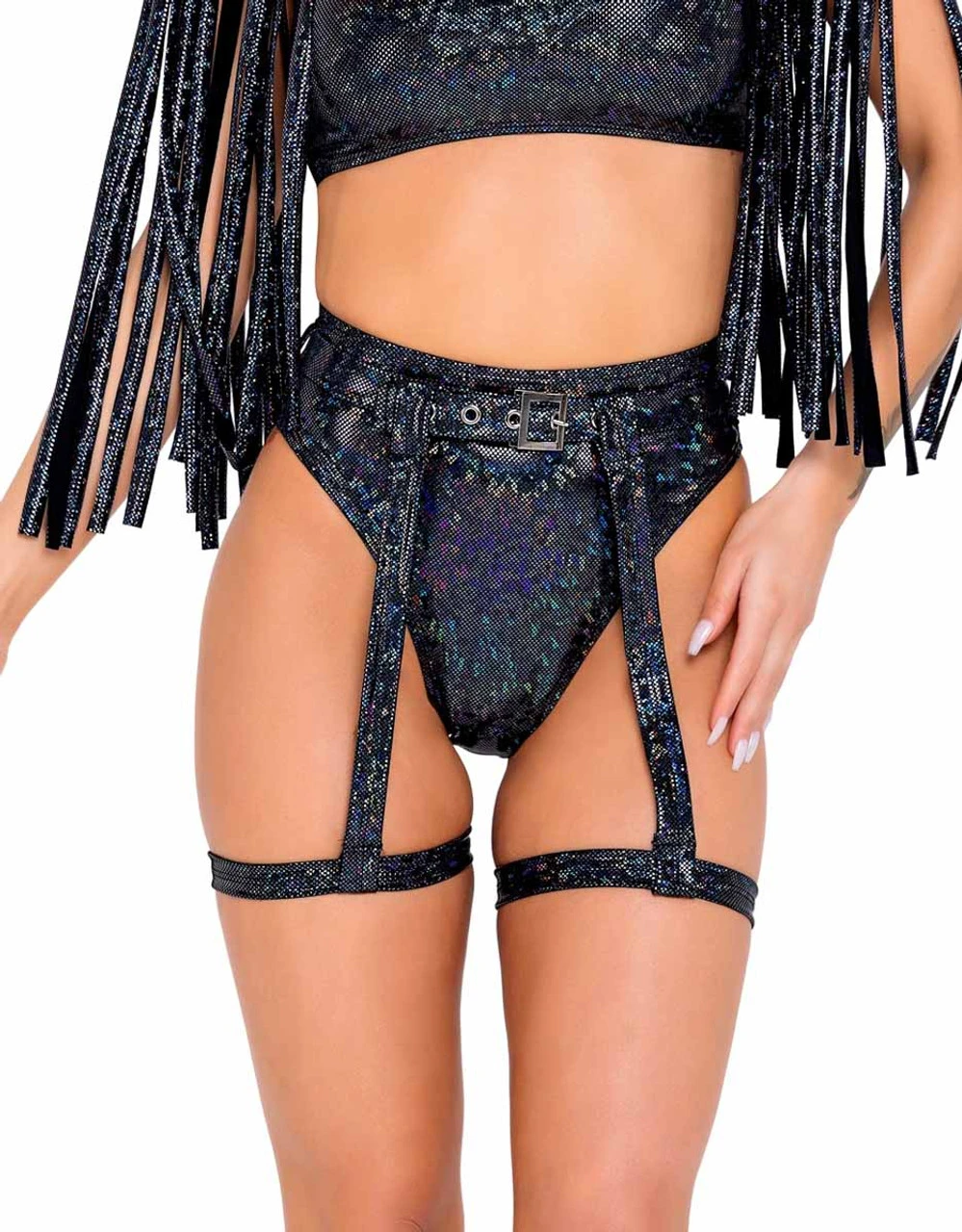 Shimmer High-Waisted Shorts and Garter Belt