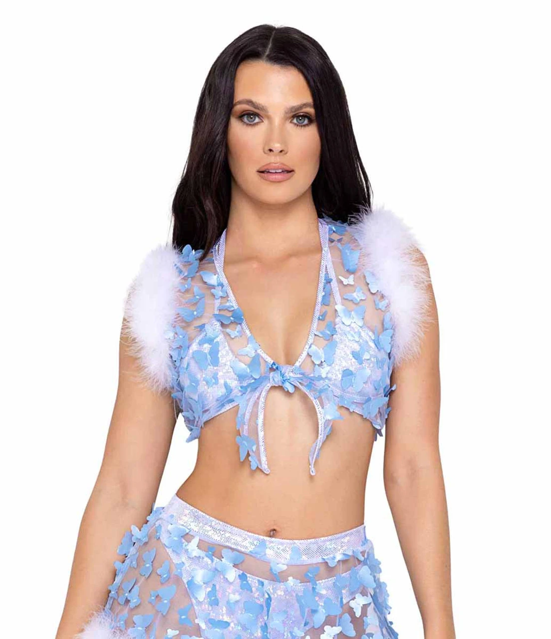 Sheer Butterfly Tie-Top with Marabou Trim