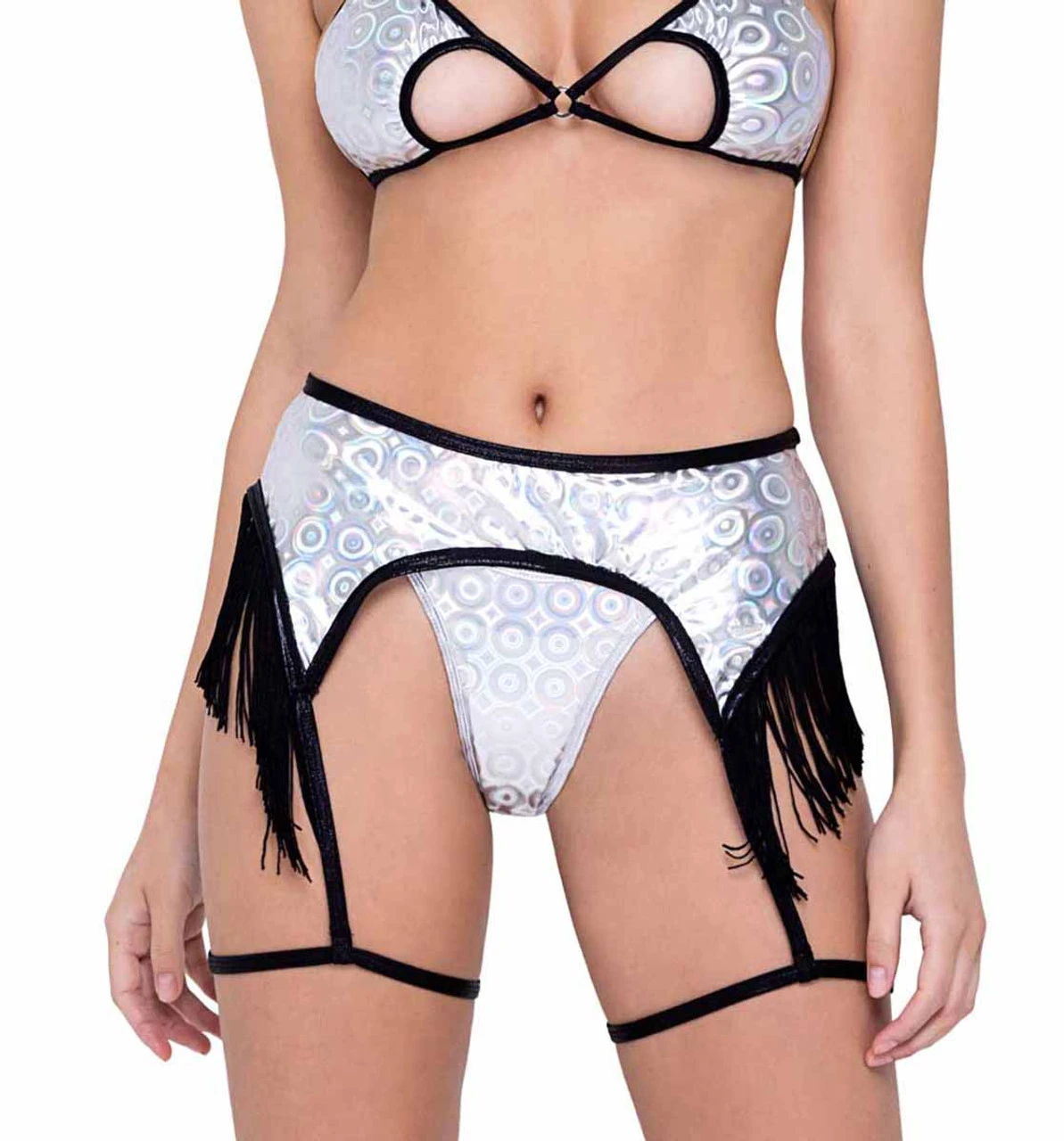 Ring Hologram Garter Belt with Fringe Trim & Leg Strap