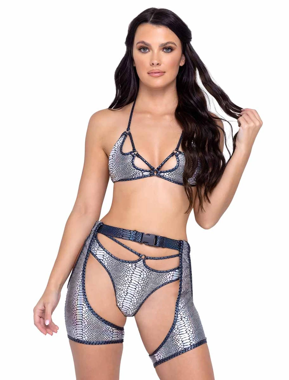 Snake Skin Thong Back Shorts with Strap Detail