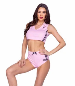 2pc Miami Soccer Player Costume Includes: Cropped Top with Soccer Print and Shorts. *Socks and Soccer Ball Not Included*